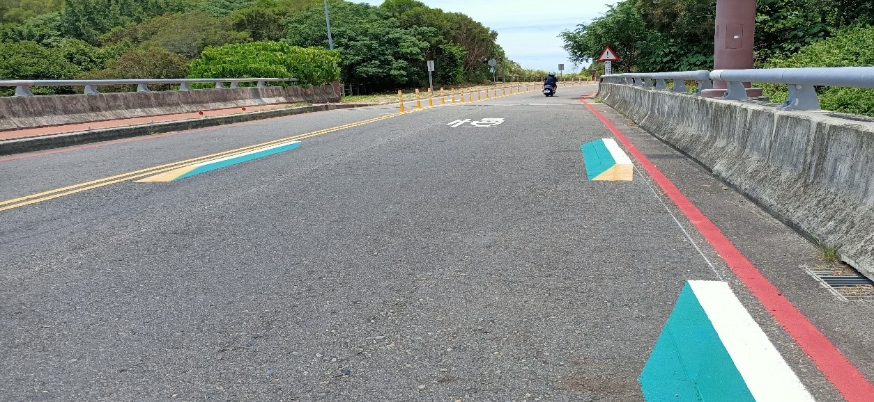 葉局長強調,配合「環、警、監」加強稽查,交通局落實執行包括在彎道、避車彎的雙黃線上設置「回復式導桿」,防止車輛競速、迴轉及壓車等跨越車道危險駕駛行為;彎道處雙側繪設禁止臨停紅線,禁止車輛在彎道處臨停聚集,以免影響行車安全。另進入彎道前增加「3D立體減速標線」,透過車道縮減的視覺效果,提醒駕駛過彎應減速慢行,同時補繪斑駁的路面標線,強化警示效果。(7/31*17)*交通局