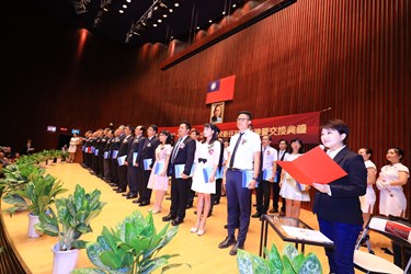 今日典禮在台灣大道市政大樓舉行,由盧市長主持見證,財政局長羅仙法、主計處長蔣建中、教育局長楊振昇擔任監交人;民政局專門委員洪紹欽、市政顧問詹春茂、張國章、江一郎、黃浤裕、陳又榛、黃永祿、全人家長協會及台中市家長會長協會代表等均出席觀禮。(7/31*6)*教育局