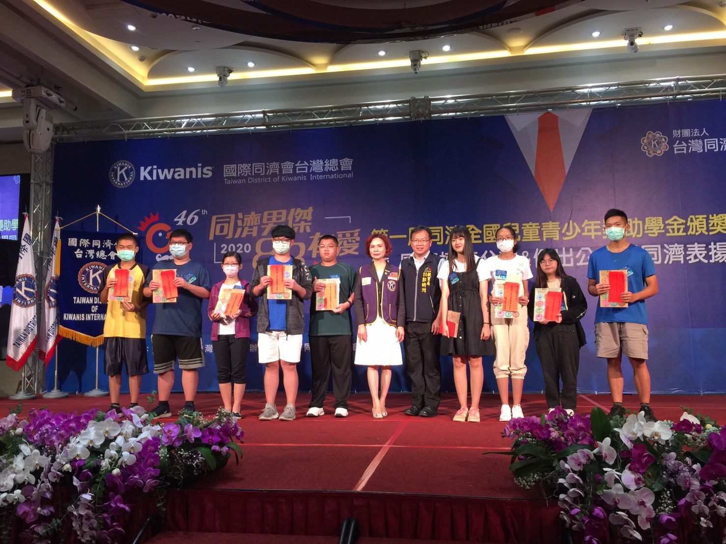 國際同濟會台灣總會為鼓勵學子發揮努力不懈、奮發求學的精神,今(1)日在台中市葳格國際會議中心舉行「109年同濟獎助學金」頒獎典禮,分別有國小組150位、國中組150位、高中組150位,共計450位學生獲獎。