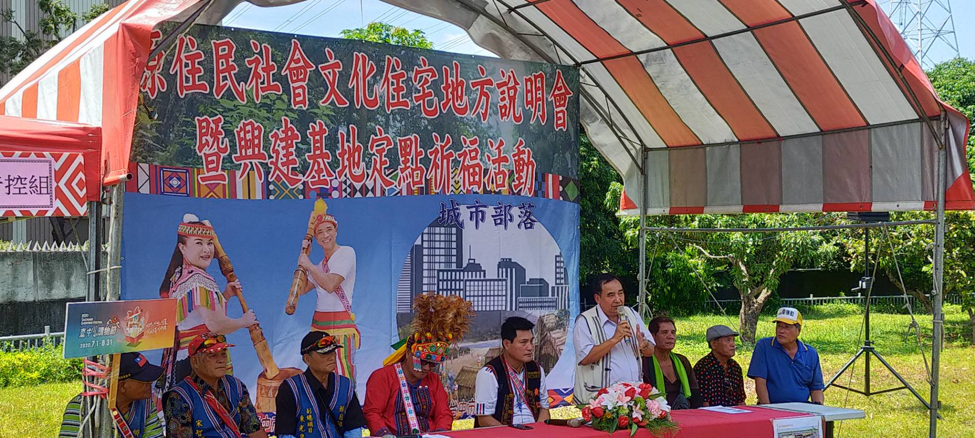 今日包括原民會主委林益陸、地政局主任秘書黃冰如、市議員黃仁、李天生、市政顧問邱孟玲與多位原住民各族群耆老、社團代表等,均出席說明會及開發基地定點祈福活動;台中市議會副議長顏莉敏、立法委員伍麗華、市議員蘇柏興等也派代表到場參加。(8/1*6)*原民會