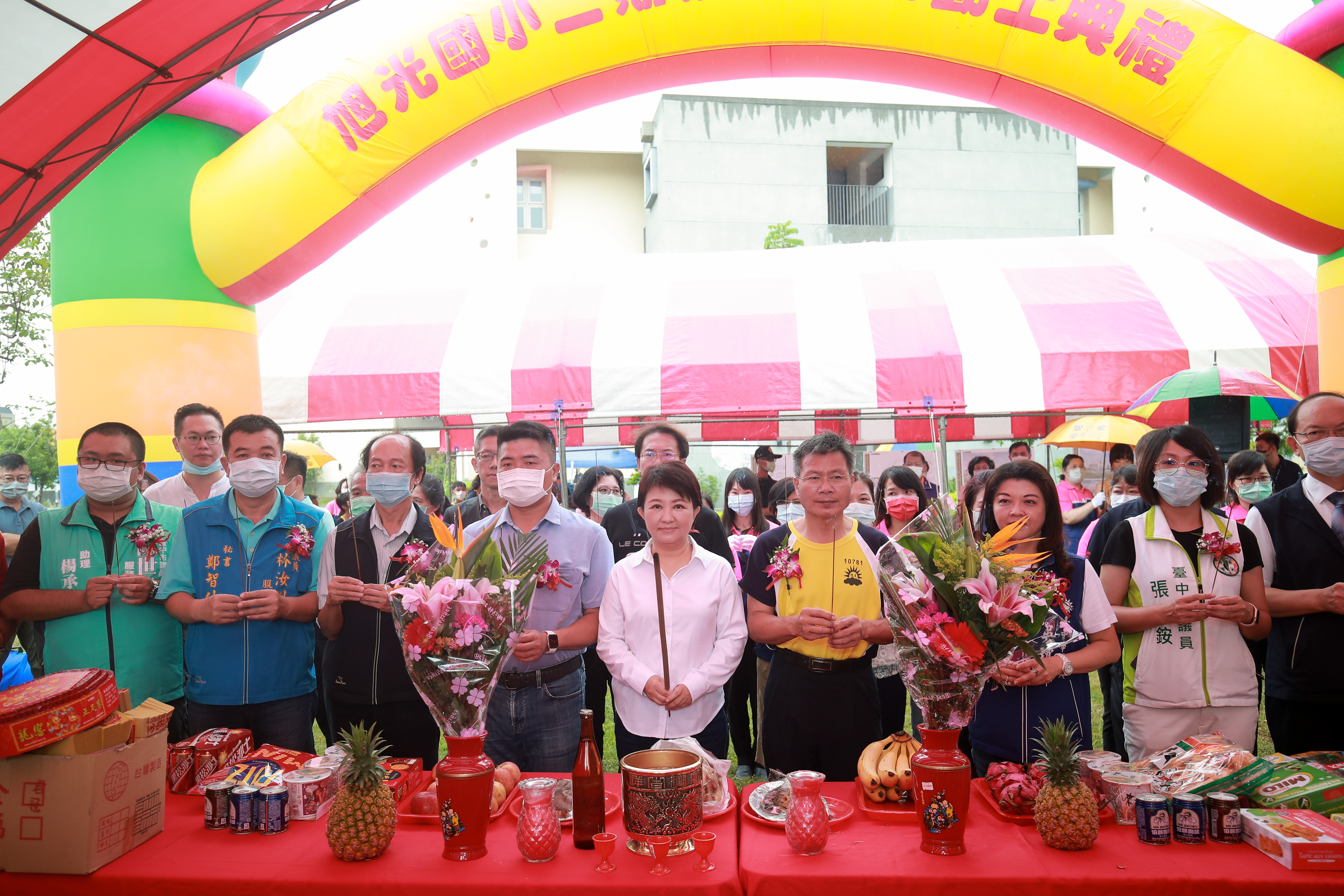 旭光國小今(3)日舉行二期校舍興建工程開工典禮,盧市長出席典禮表示,旭光國小已設立逾60年,106年遷至高鐵重劃區內,因近年快速發展,人口成長快速,校舍不敷使用,因此在議員建議下,市府籌編預算興建二期校舍,預計2年內完工;另因應施工期間的過渡期,市府也規劃興建臨時教室及廁所,希望提供學生良好的學習環境。