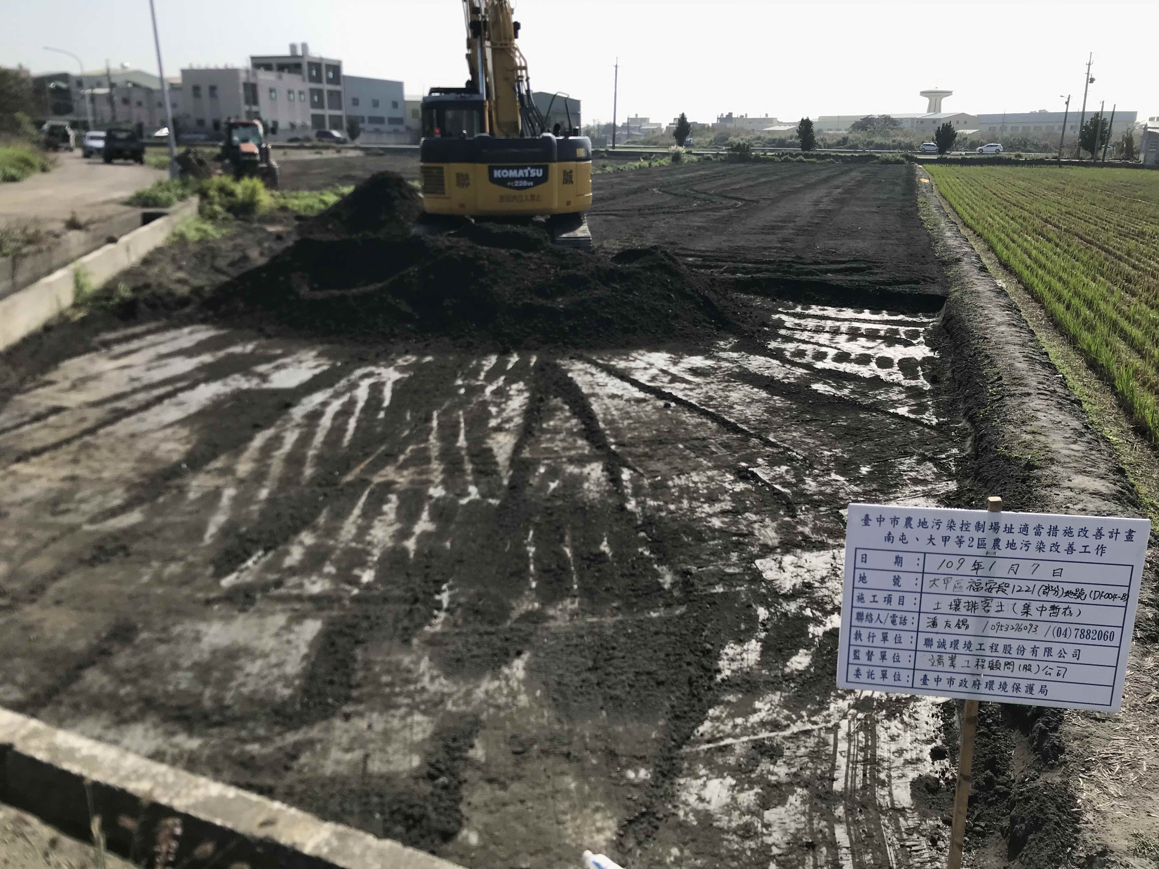 為維護台中市農地環境品質,台中市政府總列管農地面積約89.3公頃,目前已改善88.8公頃污染農地並解除列管,改善率達99%,剩餘0.5公頃污染農地,市府已責成污染行為人改善;近年更向行政院環保署爭取2億元補助經費,分年分期展開污染整治工作,可望於明年底前完成全市農地污染整治,恢復良田。