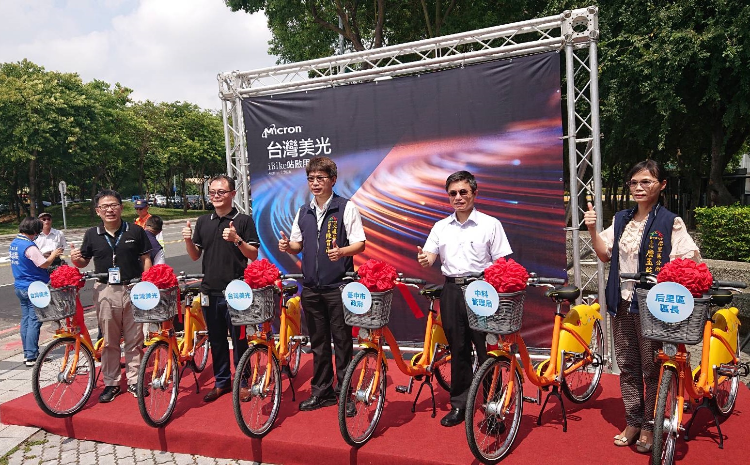 台中市政府自103年7月起推動「公共自行車建置計畫」,迄今共設置329站、提供9,175輛公共自行車。台灣美光為台中首家申請捐贈iBike租賃站的民間企業,捐贈站點設在中科后里園區后科路與三豐路口,已於日前啟用;交通局副局長陳育正表示,感謝台灣美光響應建置綠色運具,讓市民享受便利的公共自行車租借服務。