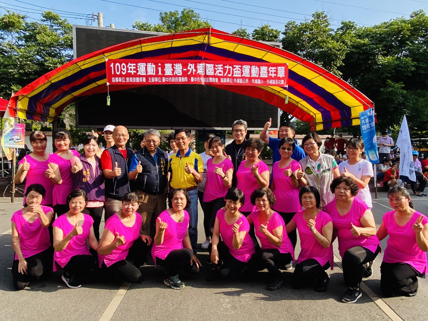 今日活動,令狐副市長、運動局長李昱叡、外埔區長葉聯慶、外埔區體育會理事長同時也是市議員吳敏濟、市議員施志昌等皆到場共襄盛舉。吳議員感謝市府對於外埔區各項體育設施、體育活動的支持與協助,讓市民養成規律運動的習慣,促進身體健康。 (8/9*8)*運動局