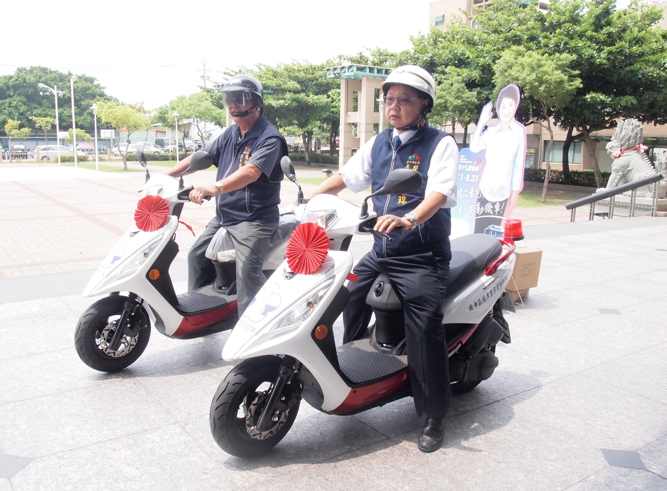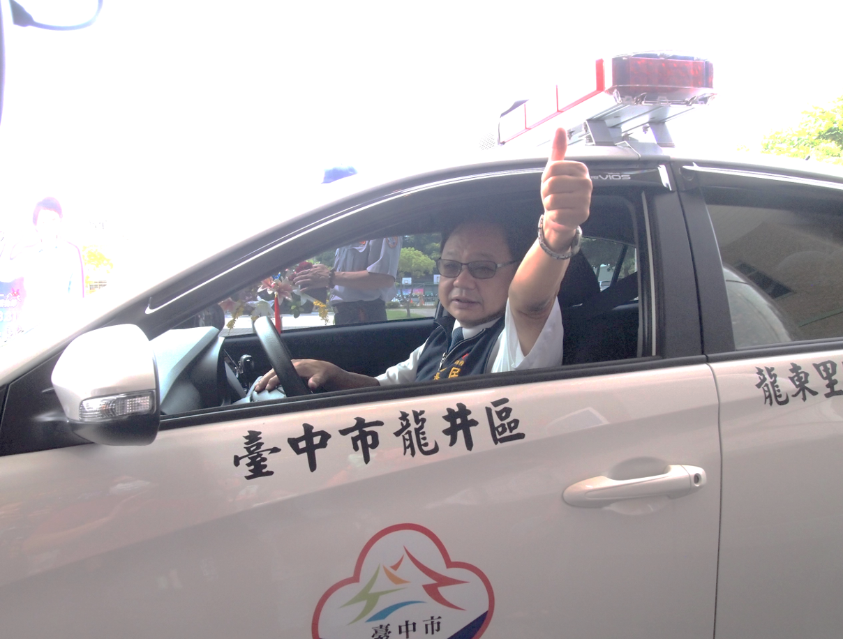 龍井區長戴燕如說明,守望隊維護治安及協助鄰里基層服務,工作時間長,此次添購新車輛的兩個里總人口共近萬人,將提高守望隊巡邏效能。龍東里長陳翰儀及龍津里長張坤雄也感謝市府支持,維護當地治安。