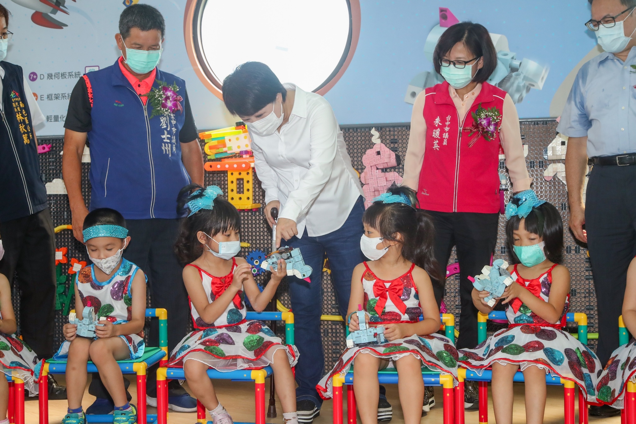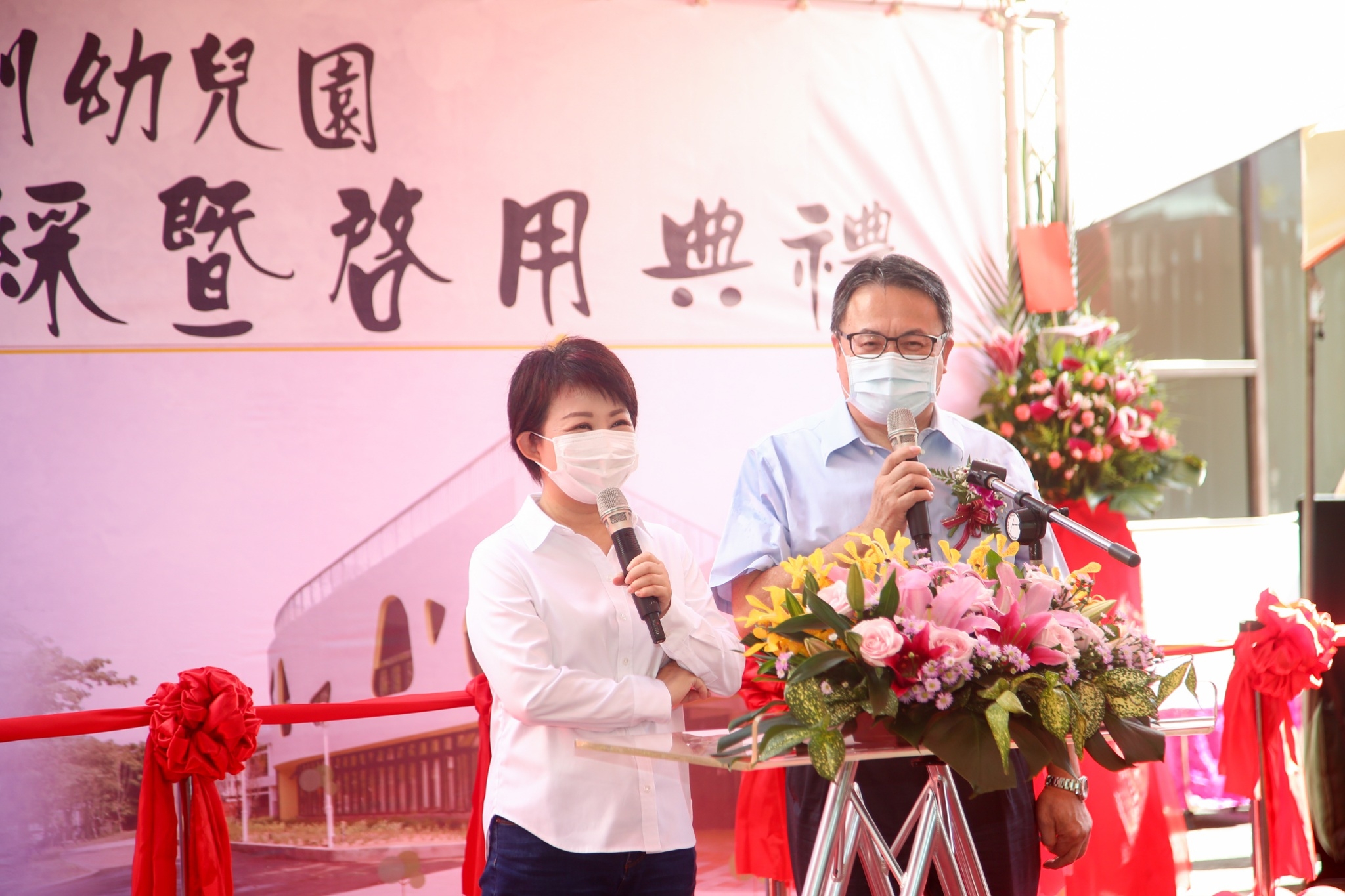 盧市長指出,她上任以來積極推動「公托公幼倍增計畫」,預計111年底前增加180班,108至109學年度已增設131班,擴增3,600餘名進入公共化幼兒園就讀機會;另行政院規定各縣市幼托家庭支出不要超過15%,台中市目前幼托占家庭支出僅8%,為六都最低,未來將持續增設公托公幼,減輕年輕父母負擔,讓大家敢生敢養。