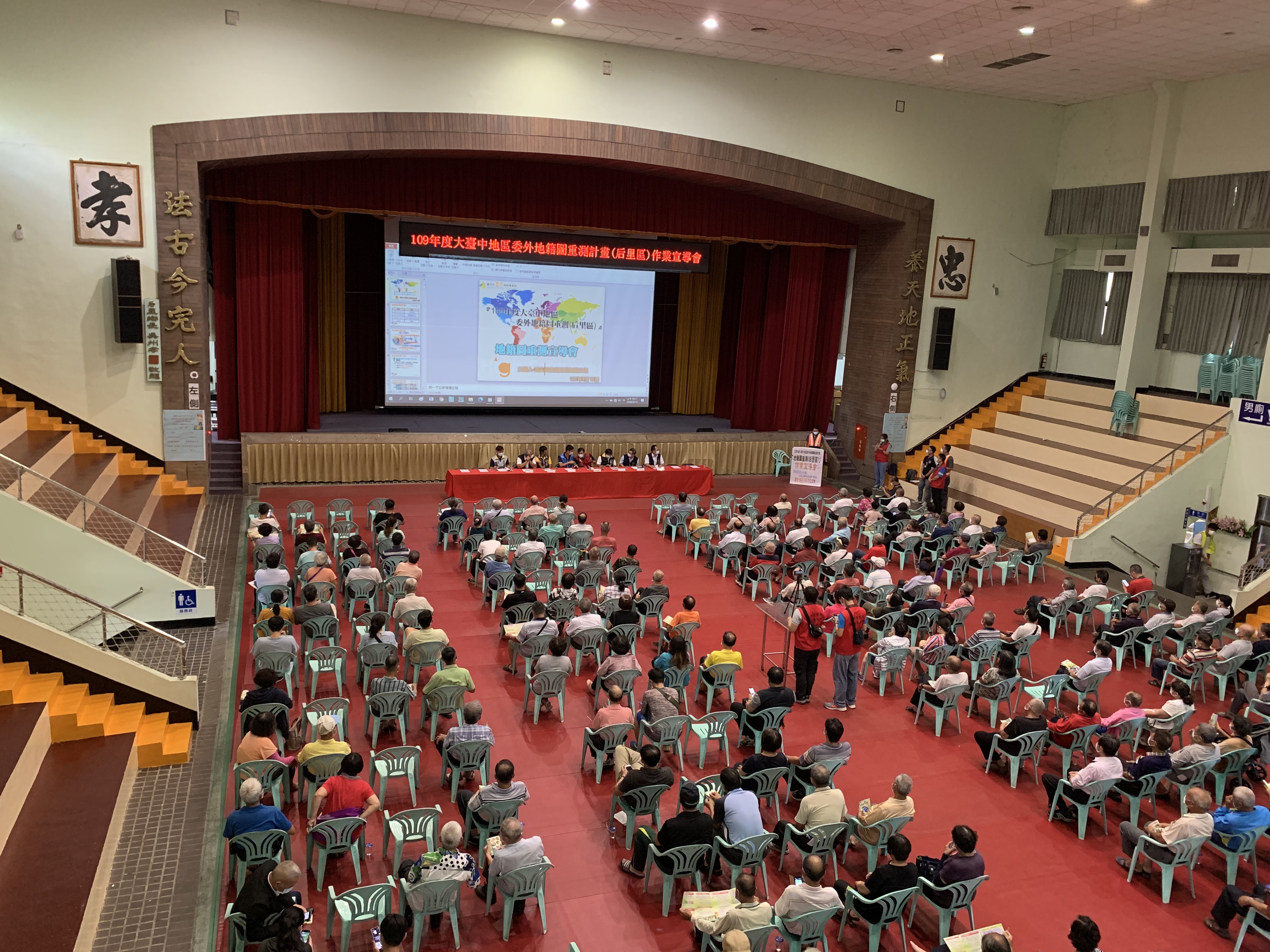 台中市豐原地政事務所辦理「月眉段」及「后里段」地籍圖重測作業,土地筆數4,717筆,面積約647公頃。豐原地所今(13)、明兩日於后里區內埔國小舉辦「109年度大台中地區委外地籍圖重測計畫(后里區)」宣導說明會,計有數百位土地所有權人參與,讓民眾了解自身權益。