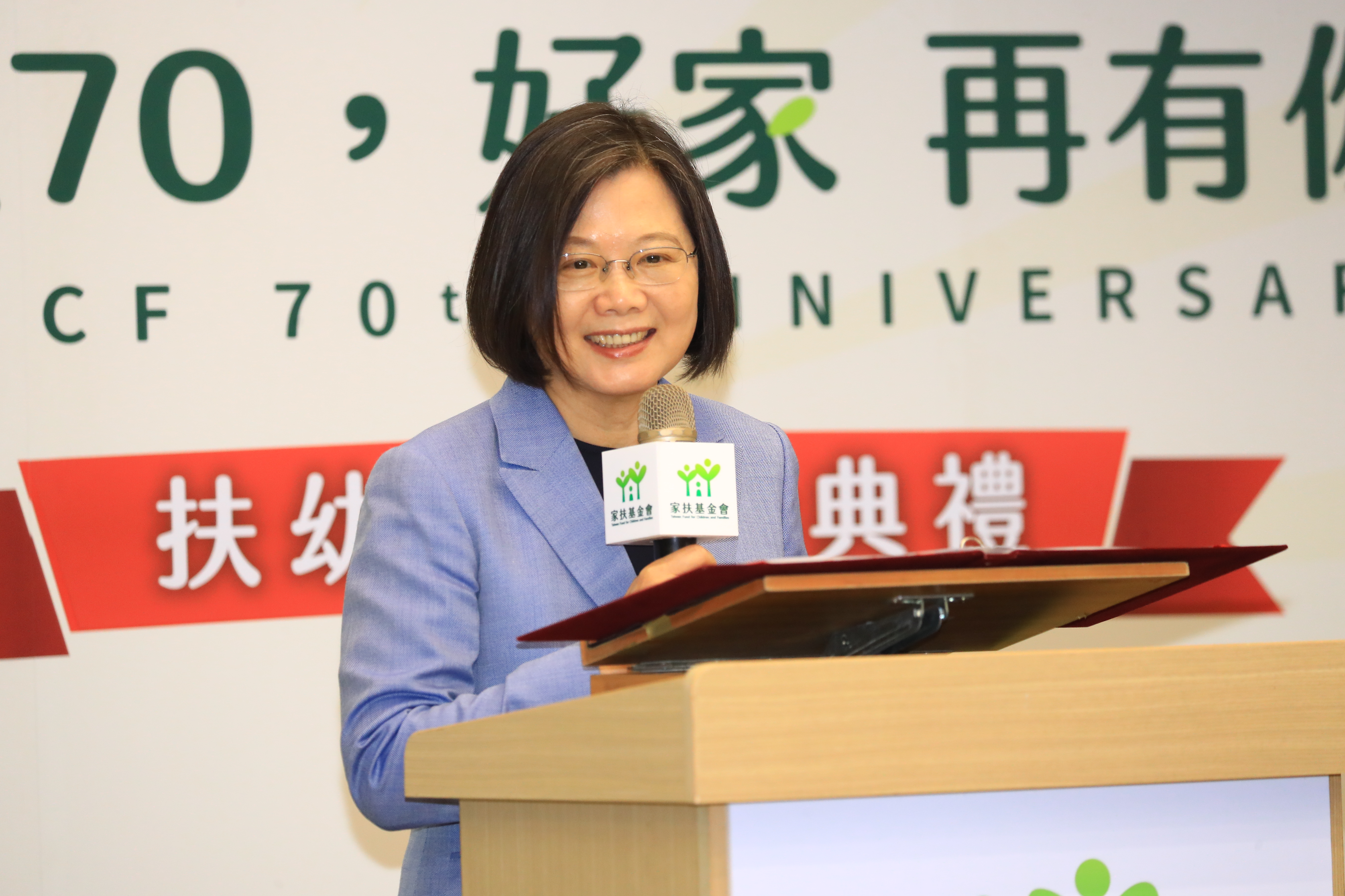 「台灣家扶服務從台中開始!」同樣是家扶捐款人的蔡總統指出,今天新館成立,她一定要出席,因為家扶真的很重要!恭喜扶幼館啟用,今年是家扶70周年,歷年來有很多創舉,有了這座社服新地標,相信會有更多的創新服務,幫助奠定社福政策基礎。