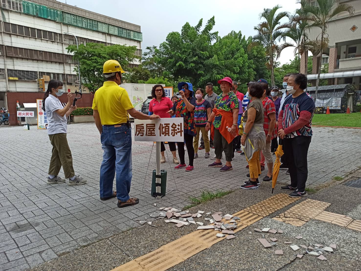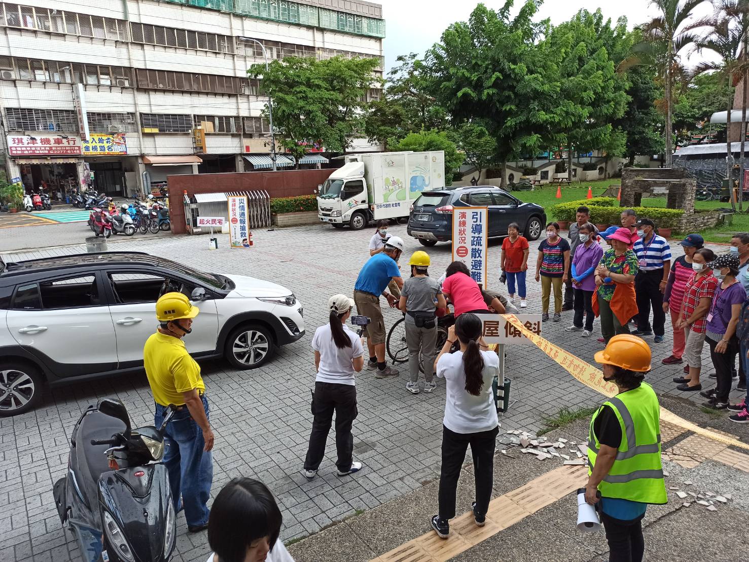 大里立德社區今日作為台中市韌性社區示範演練,模擬中部地區發生芮氏規模6.3地震,地震後造成房屋傾斜、倒塌等災情,立德里長江和樹立即啟動社區防災組織,聯繫各災害編組成員,執行災情查通報、初期搶救及疏散收容等工作,並首次由韌性社區自主結合當地鄰近學校、志工團體或企業等民間單位,開設避難收容處所供災民使用。