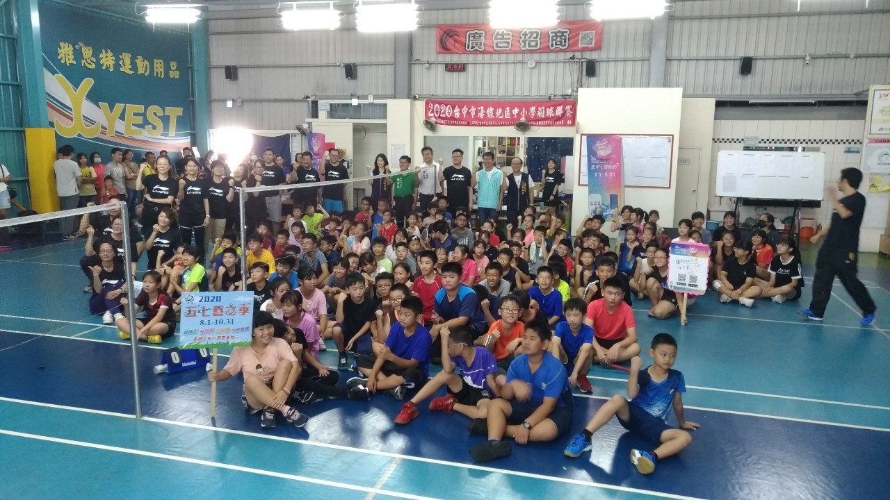 由台中市政府運動局指導、台中市劍舞羽球推廣協會舉辦的「2020台中市海線地區中小學羽球聯賽」昨(16)日於梧棲樂活羽球館登場,吸引300多位中小學生切磋球技,展現青春活力。運動局也派代表到場肯定台中羽球運動扎根基層,鼓勵年輕選手精進球技。