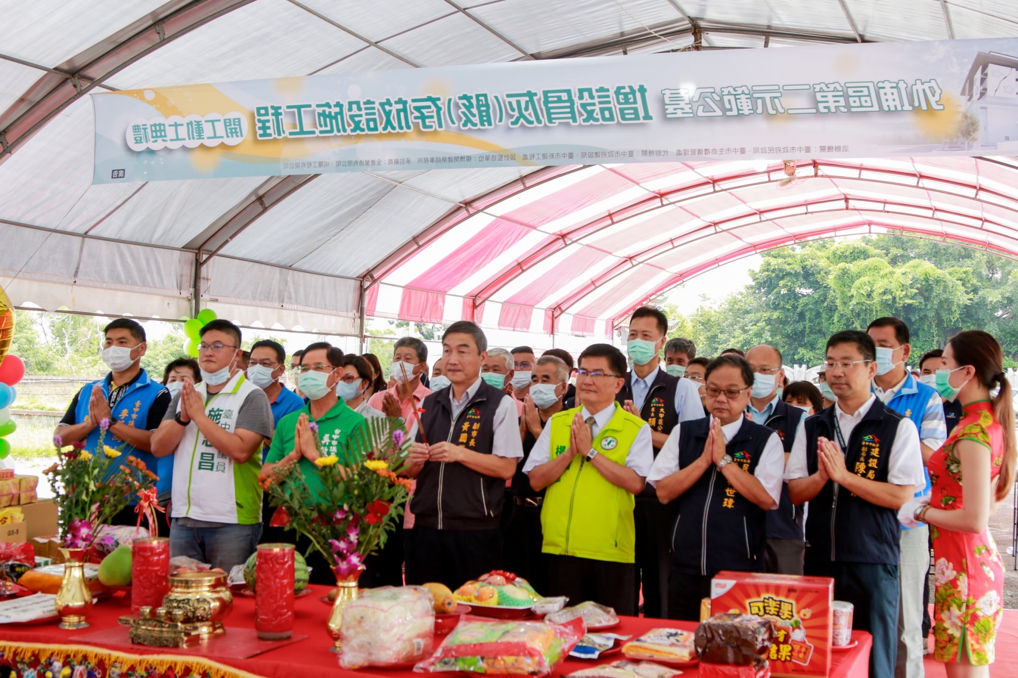 今日破土典禮包括黃副市長、民政局長吳世瑋、財政局長羅仙法、建設局副局長陳永欣、新建工程處長葉双福、生命禮儀管理處長劉振村、外埔區長葉聯慶、大甲區長顏金源、市議員吳敏濟、施志昌、楊典忠,以及市議員李榮鴻服務處代表等人都到場,一同祈求工程順利完工。(8/17*7)*建設局