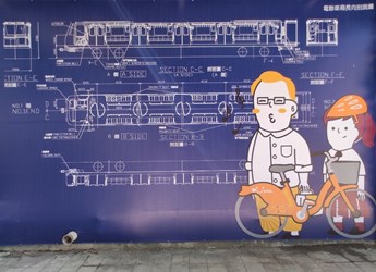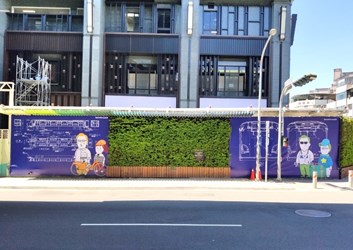 捷運綠線通車倒數中,文華高中站也悄換新裝,台中市政府交通局將文華高中站出入口施工圍籬退縮,拓寬人本道路,留設1.5到1.8米的人行道空間,同時將圍籬美化設計,首次公開捷運車廂細部設計圖,讓市民透過圖面欣賞集結精密、精準、科技、工藝於一身的捷運工程,歡迎市民來拍照打卡留念。