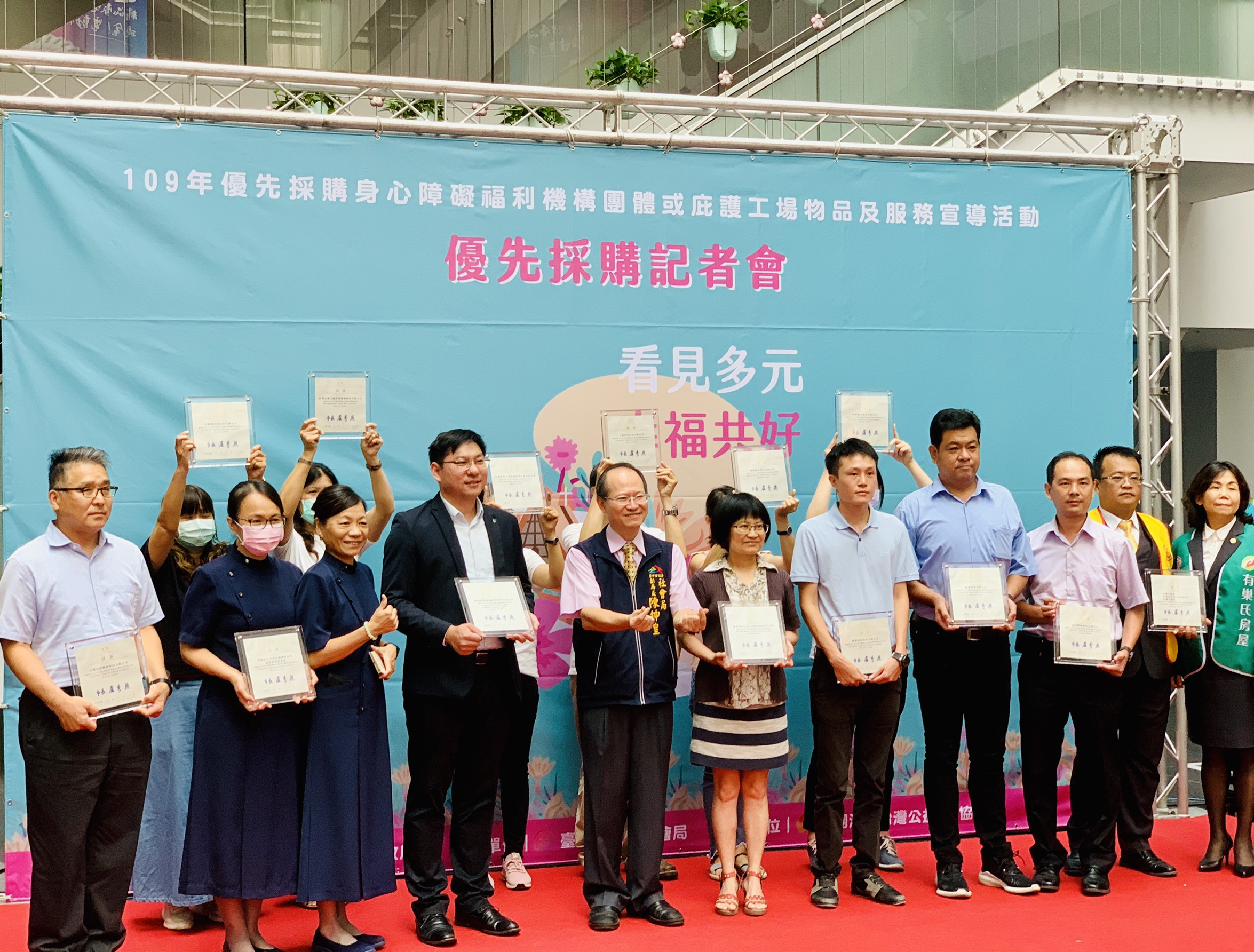 台中市政府社會局今(20)日在台灣大道市政大樓舉辦「109年優先採購秋節產品促銷記者會」,現場邀集15家身心障礙福利機構團體及庇護工場設攤,推廣自製的秋節產品,並開放民眾試吃、試用。副局長陳坤皇表示,希望大家用行動支持身心障礙朋友,讓他們用自己的力量貢獻社會、實現自我。