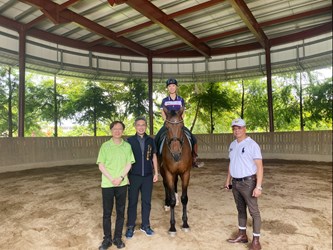 此外,今日李局長也親自到神馬郡休閒農場為「2020年第一屆神馬郡馬術比賽」頒獎,為選手勉勵。馬術比賽頒獎,運動局表示,神馬郡休閒農場是全台第一間申請為休閒農場的馬場,場內提供專業馬術課程、馬術適應性運動、騎乘娛樂、手作、香草與咖啡品嚐等服務,致力打造公益、人文、知性與藝術的溫馨農場。今年辦理「2020年第一屆神馬郡馬術比賽」為推廣馬術運動、馬術教育,提升騎術水準,共分幼幼級、成長級、B2、親子 Pony Game等賽別,提供多元馬術競賽供民眾參與。