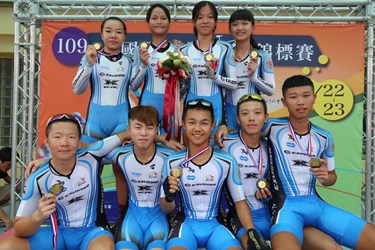 109年全國自由車場地錦標賽」今(22)日至23日於台中清水鰲峰山公園自由車場舉行,共計122位選手參賽,包括2014釜山亞運金、銅牌好手蕭美玉、黃亭茵等人同場競技,賽事精彩!市府運動局長李昱叡今日出席為4公里團隊追逐賽頒獎,肯定選手優秀表現。