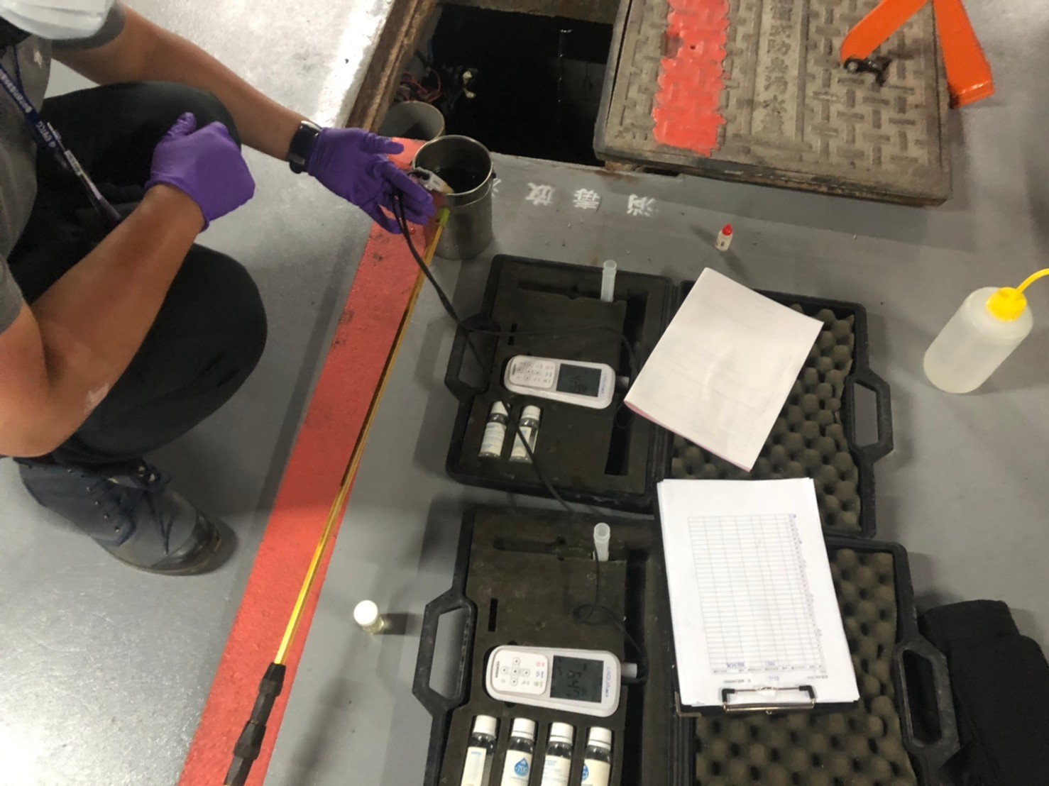 消毒放流池pH及電導度檢查