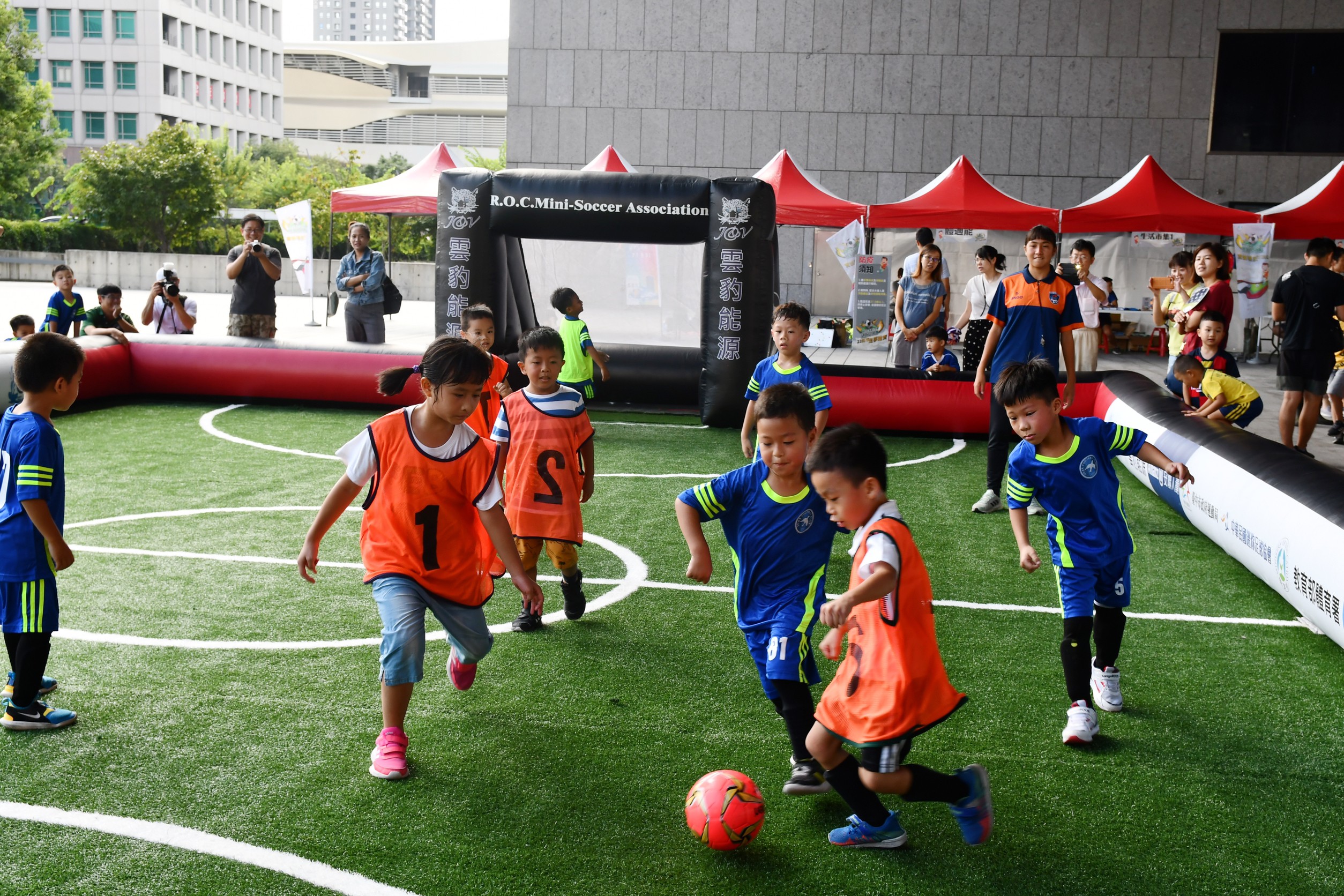 運動局表示,今年迷你足球賽以遊戲為主、競技為輔,將孩童分為6歲(U6)幼兒組及8歲(U8)國小組,除設計安全及趣味性規則,場地也設有充氣式圍欄、人造草皮球場,周邊還有體適能檢測服務及趣味足球攤位等,現場大朋友、小朋友玩得相當盡興。