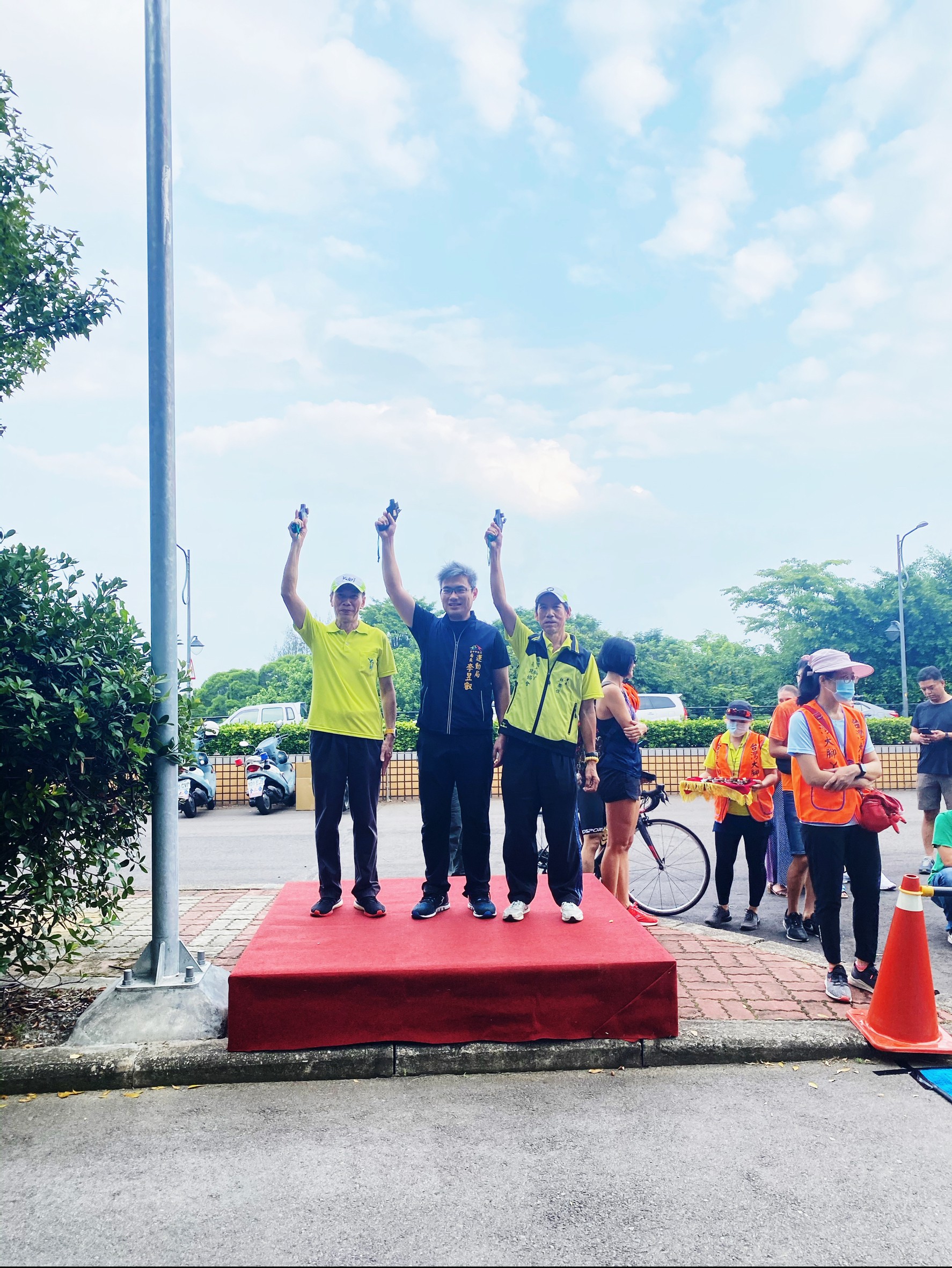 運動局表示,感謝台灣大腳丫長跑協會多年來推廣跑步運動不遺餘力,除辦理「大腳ㄚ鐵人兩項錦標賽」,也辦理國內、外馬拉松競賽,提供各式的跑步資訊與環境,為社會注入活力與生命力;今日市議員楊典忠、台灣大腳ㄚ長跑協會長林榮佳等人皆到場為選手加油打氣。(8/30*11)*運動局
