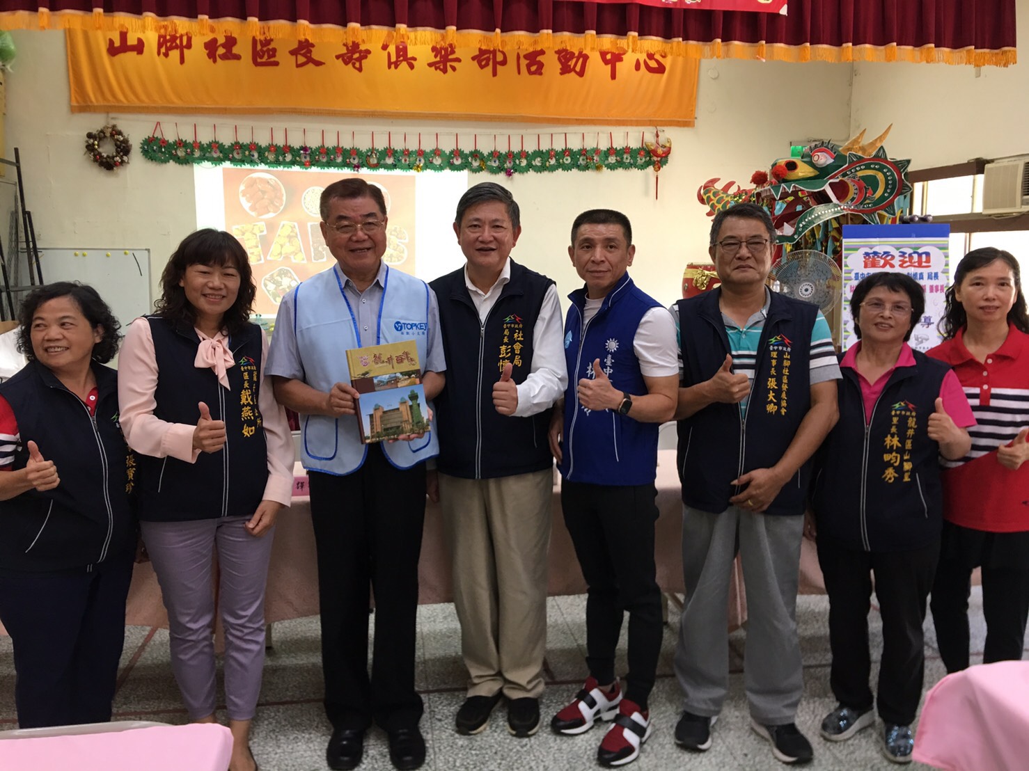 今日活動社會局長彭懷真、市議員林孟令、龍井區長戴燕如均出席,與在地里長及拓凱教育基金會董事長沈文振、龍井區山腳社區發展協會理事長張大卿一同關心社區照顧關懷據點業務。(8/31*10)*社會局