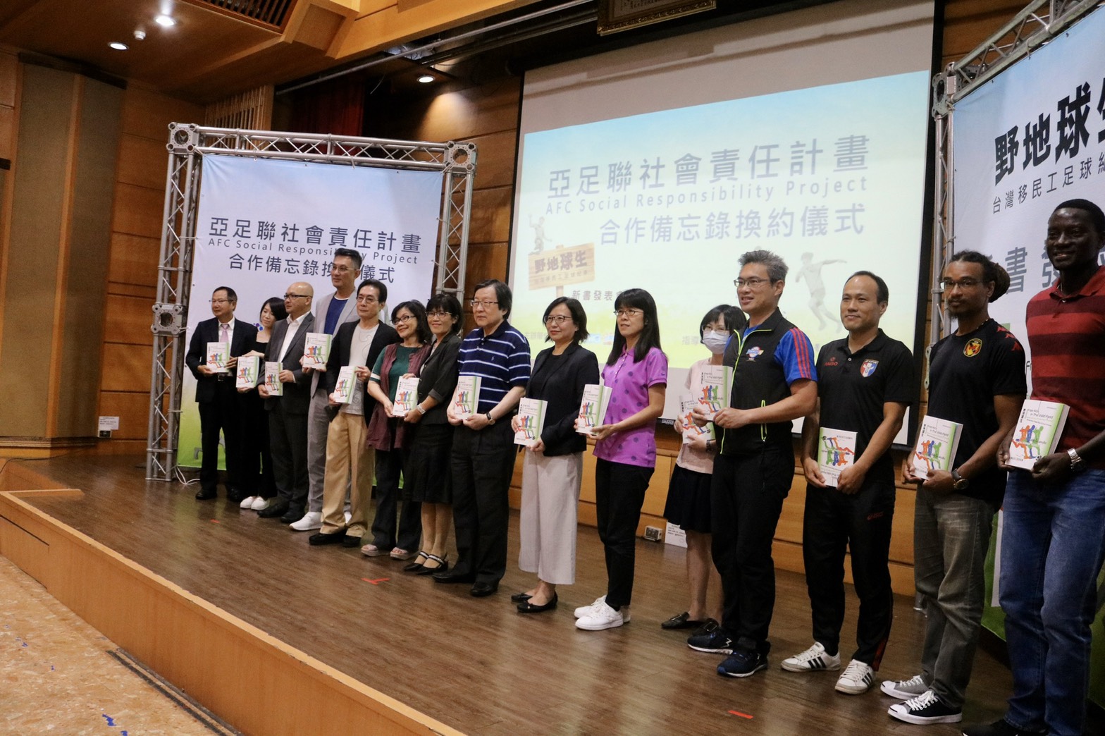 亞足聯社會責任計畫合作備忘錄暨《野地求生-台灣移民工足球紀事》的新書發表會,包括中華民國足球協會理事長邱義仁、台灣外籍工作者發展協會理事長李文琪、教育部體育署國際及兩岸組組長許秀玲、運動局長李昱叡等人均出席見證。(9/1*18)*運動局