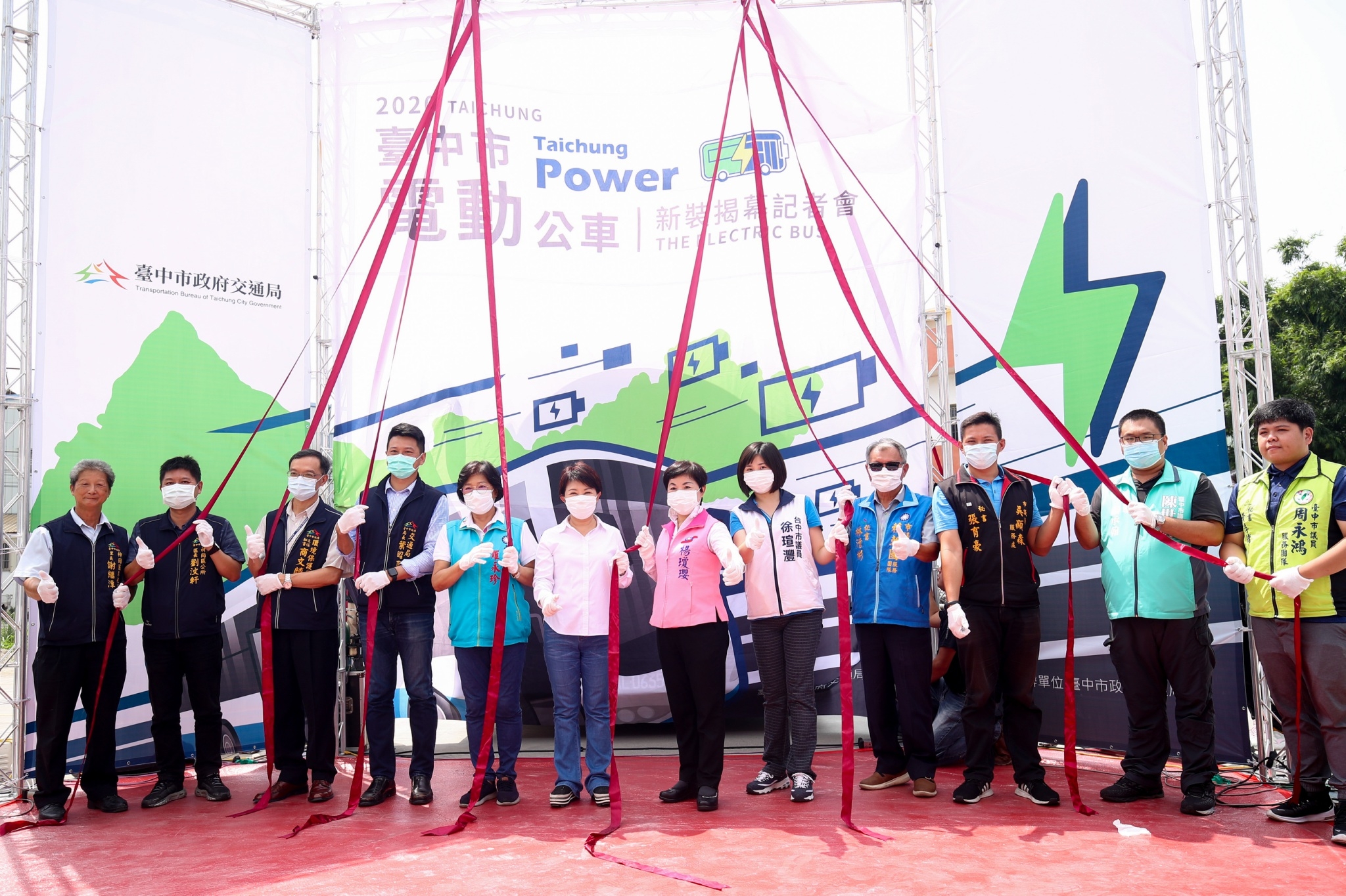 台中市政府積極改善空氣品質,透過減少移動污染源,加速業者引進電動公車,降低公車廢氣排放量,並將所有電動公車車頭及車尾,統一以白底搭配綠色閃電標誌,提高辨識度,新塗裝電動公車今(4)日亮相;市長盧秀燕表示,自上任以來電動公車數量從原先145輛,到今年底預計成長至190輛,一年可減少約4萬台機車排放二氧化碳量,任內將力拼電動公車數倍增至290輛,鼓勵市民一同節能減碳。