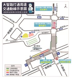 因應大智路打通,市府交通局重新調整火車站周邊計程車排班區,將原地下停車場內的計程車招呼站及復興路側的排班計程車格,整併至大智北一街(台中車站東站南側道路)避車彎處,並設置計程車招呼站,讓民眾搭計程車更便利安全。