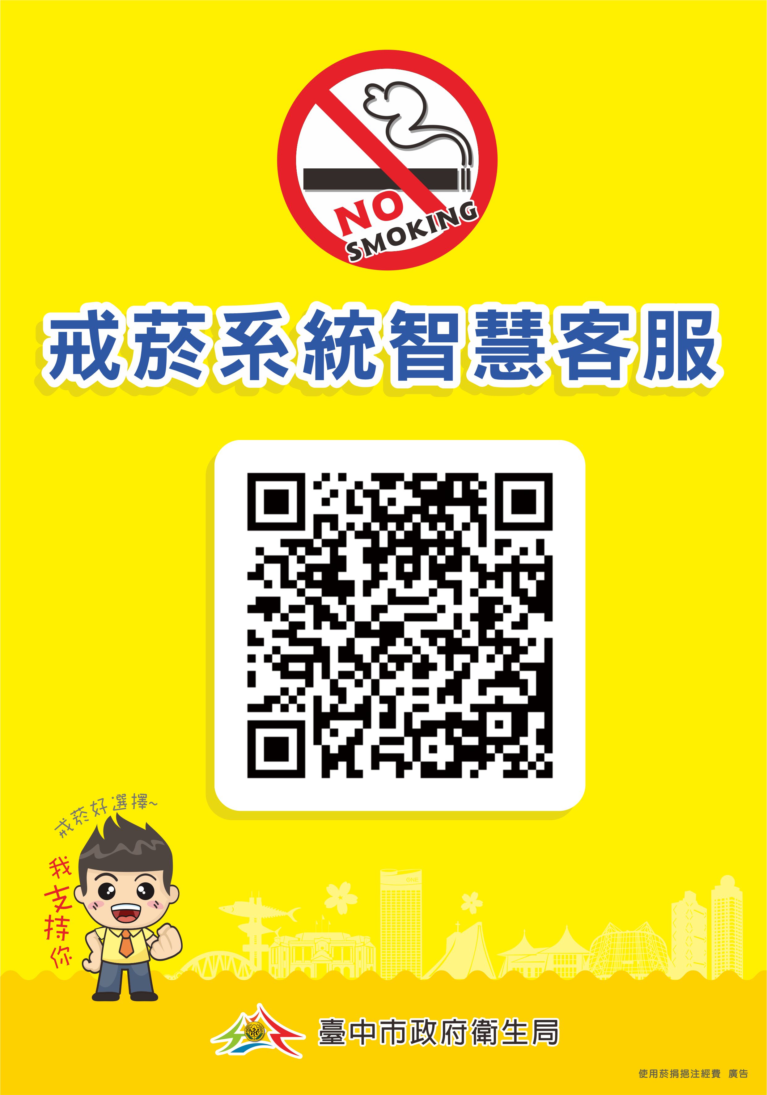 台中市政府為協助市民戒菸,率六都之先結合45家戒菸服務合約醫院,共同推動「臺中戒菸系統智慧客服LINE@」,提供24小時即時戒菸服務,量身打造個人戒菸計畫,市長盧秀燕今(9)日出席發表記者會表示,台中戒菸服務績效六都第一,持之以恆推動戒菸,不僅讓民眾重拾健康、節省買菸支出,更可節能減碳,歡迎更多民眾加入戒菸行列。