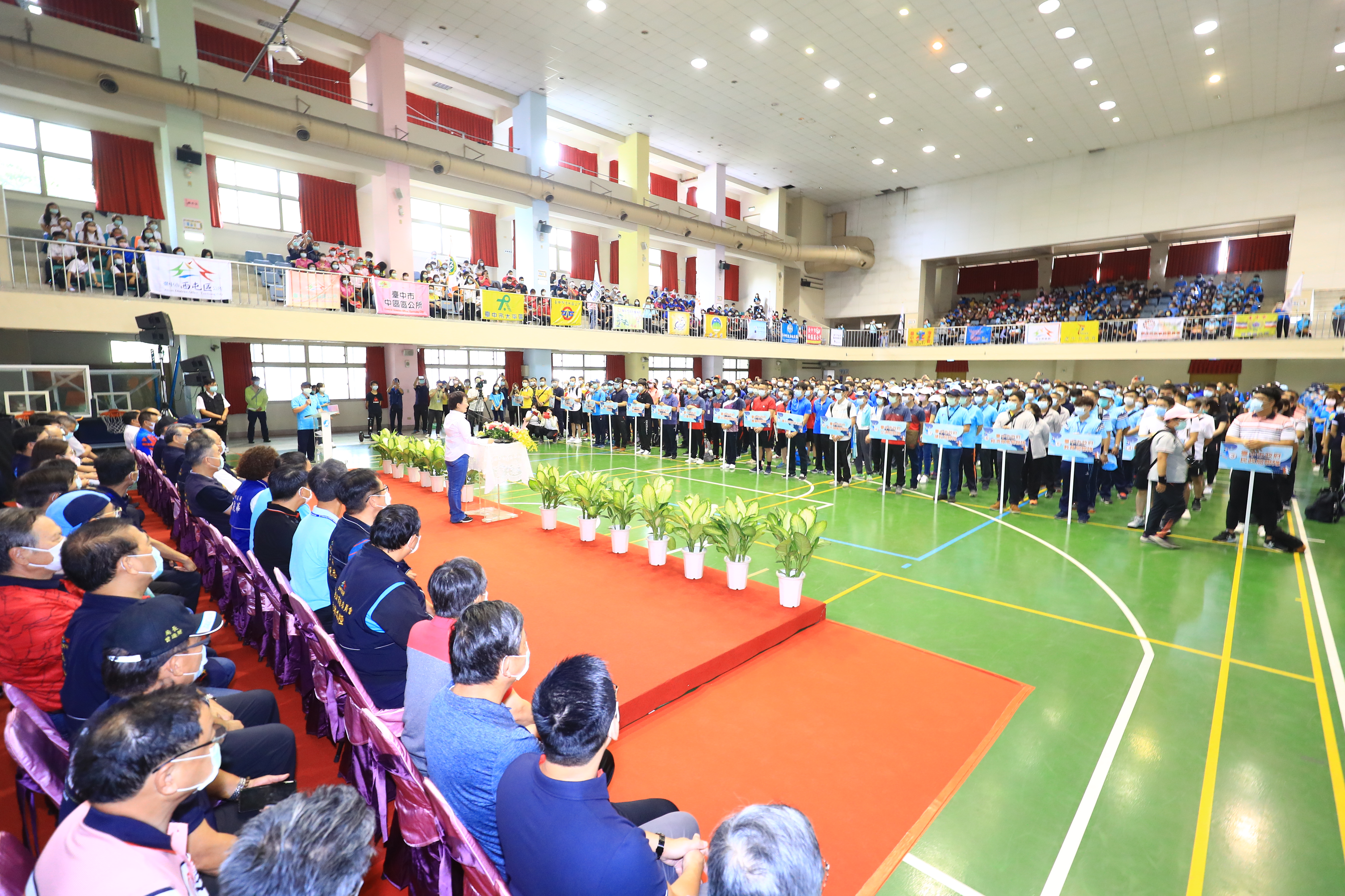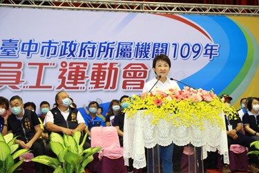 台中市政府所屬機關109年員工運動會分別在今(12)日、19日在東山高中、雅環保齡球館及朝馬國民運動中心熱鬧登場,共59支隊伍、運動員2,400多人參加。市長盧秀燕今日也親自出席在東山高中舉行的開幕式,期勉同仁身體健康、心情愉快。