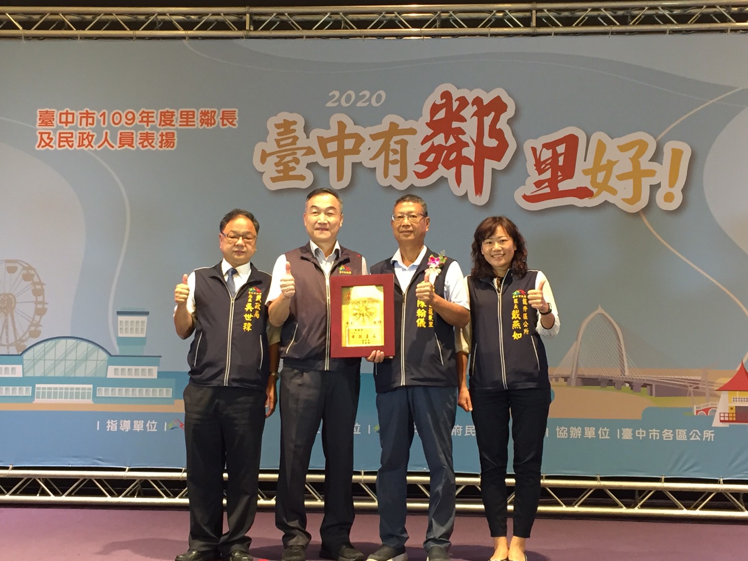 民政局長吳世瑋表示,此次表揚活動分4場次舉辦,今年度壓軸的海線場次表揚261人,服務達22年的特優里長有清水區槺榔里長洪水家及龍井區龍東里長陳翰儀,其中清水區槺榔里長洪水家所成立的愛鄰守護隊更榮獲108年愛鄰守護計畫績優里隊評選第一名,成為各區鄰里學習典範;而該場次服務年資30年以上的鄰長為大安區東安里第6鄰陳宏一鄰長。