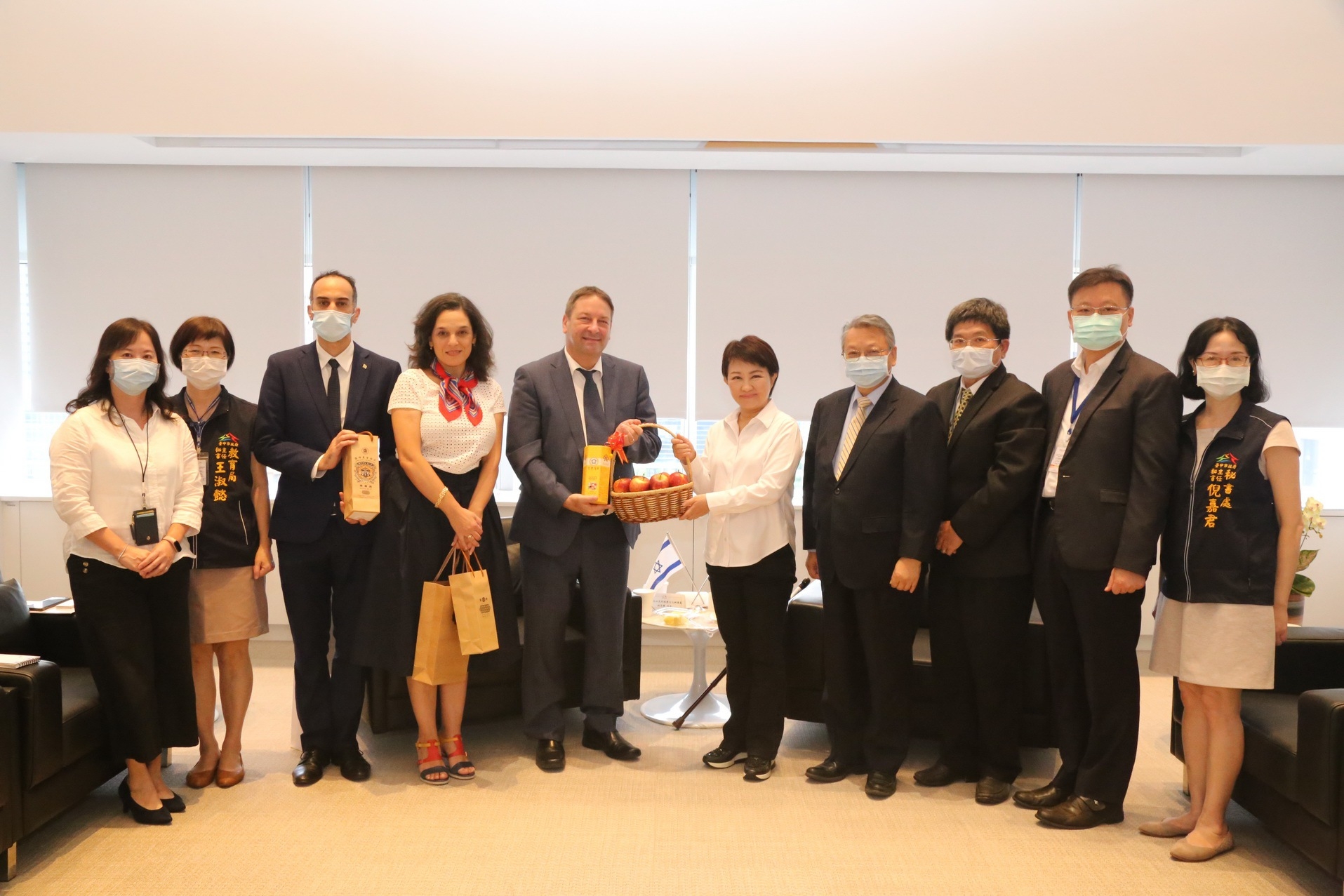 今日駐台北以色列經濟文化辦事處代表柯思畢(Caspi)、處長藍子律(Tslil Lahav)、及公共關係主任柯海瀾(Galit Cohen Caspi)一同拜會中市府