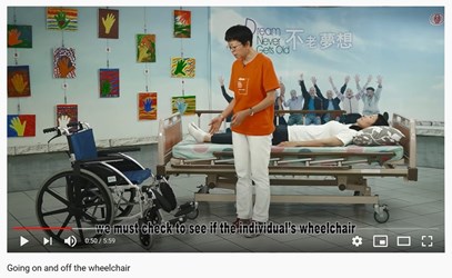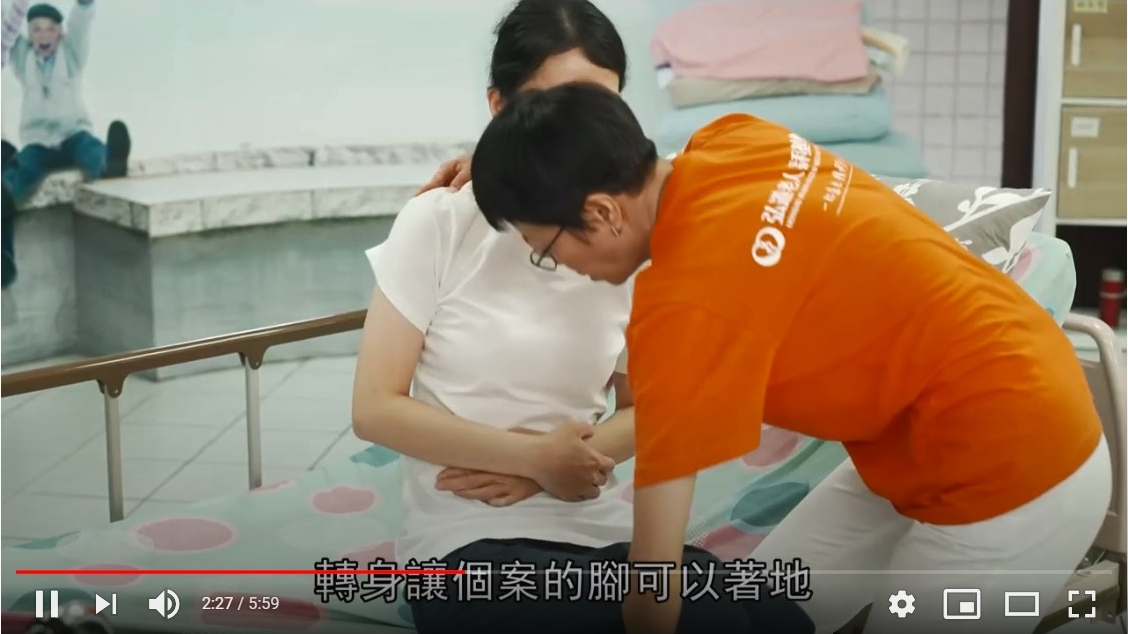 勞工局長吳威志表示,兩部影片市府特別邀請長期執行居家及社區式長照服務、長者健康、寒冬助老關懷等計畫的弘道老人福利基金會協助,由專業護理師一步一步細心解說,教導移工最省力及最保護被看護者的照顧技巧,例如運用枕頭輕鬆協助翻身擺位、每2小時要翻身才可避免壓傷產生及骨骼關節變形、使用前先檢查輪椅是否正常運作、下床使用輪椅前要先將輪椅推向床沿,使輪椅與床成45度角等,讓移工不僅可以妥善照顧被看護者,也可避免移工或家庭照顧者因施力不當受傷。
