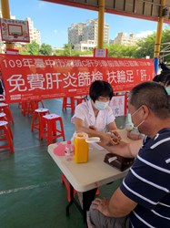 台中市衛生局結合國際扶輪3462地區台中環中扶輪社,今(20)日在烏日區九德國小舉辦「大肚、烏日、南區消除C型肝炎」活動,提供30歲以上民眾免費肝炎篩檢、子宮頸抹片檢查、口腔癌篩檢、大腸癌篩檢、乳房攝影檢查等服務,呼籲民眾重視肝病防治重要性,透過公、私協力,一同守護市民健康,降低B、C肝炎發生率。