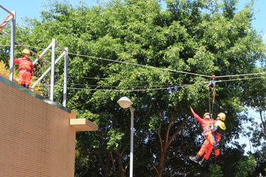 第12期救助培訓班今日結訓成果演練,包括水平橫渡自救、布魯治快速救出、繩索登降、T型救援、車禍救助、橫坑救援、低所救出等,一連串精實動作,充分展現臂力、握力、背力、腰力、腿力扎實訓練成效。陳副市長在消防局副局長戴峻焜陪同下頒發結訓證明及結訓隊服,肯定救助人員辛苦訓練成果。(9/21*18)*消防局