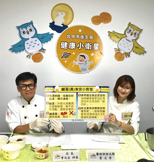 中秋佳節將到,台中市政府衛生局官方臉書《健康小衛星》推出《我的保健室:曾醫師聊聊日》直播活動,今(23)日邀請世界廚藝金牌得主裴志偉老師,教導民眾如何製作鳳黃酥,提醒購買食材或禮品應選擇信譽良好的店家,包裝上也應具有清楚的產品標示。台中市食品藥物安全處今年已抽驗鹹蛋黃共28件,檢驗結果均合格,將持續不定期抽查,為食安把關。