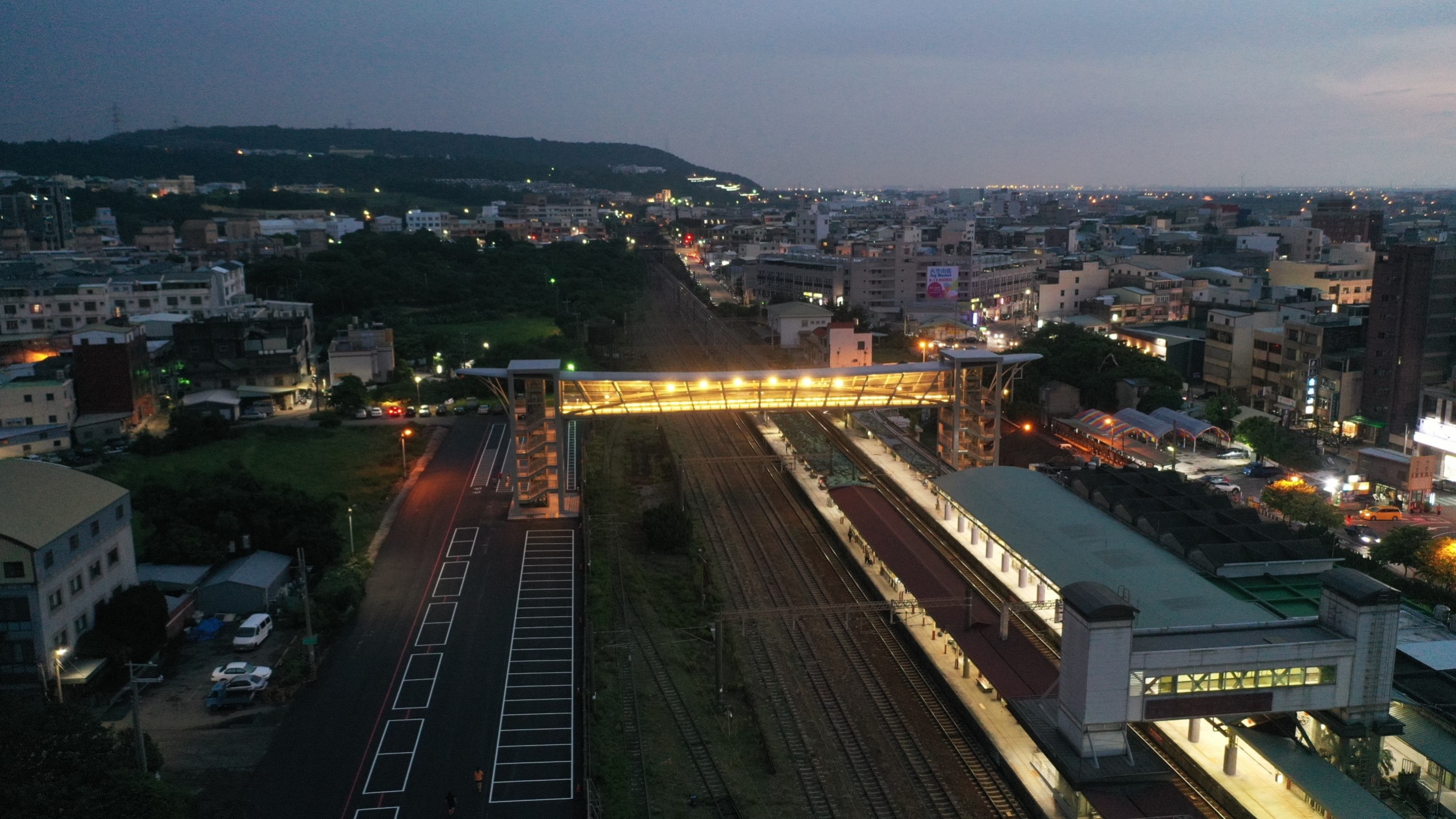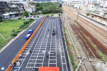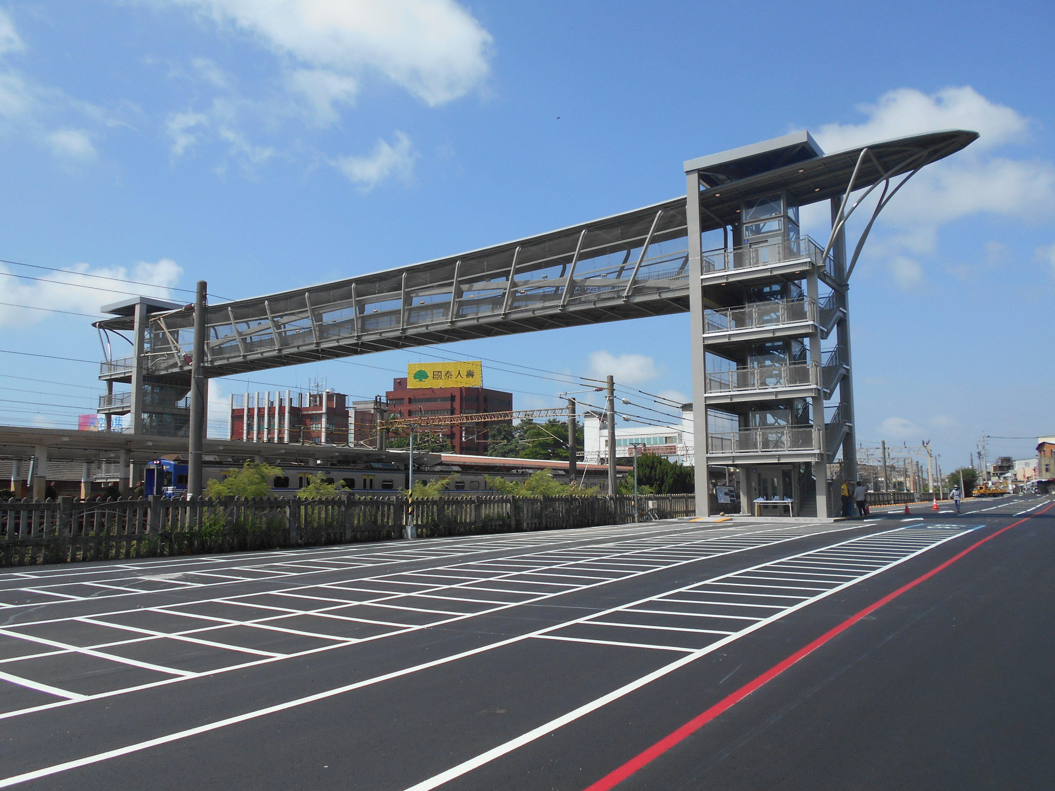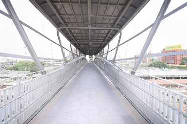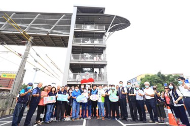 大甲火車站前、後站通行無阻!台中市大甲區火車站因無後站,長達近百年民眾出入前後站須繞道而行,通行不便,如今大甲火車站人行跨越橋完成,後站也新闢可容納250席汽、機車位的甲后停車場,大幅提升大甲交通要道便利性。市長盧秀燕表示,這座橋無論一般民眾、行動不便者或推嬰兒車的父母都能方便通行,新闢停車場也讓接送更加便捷。