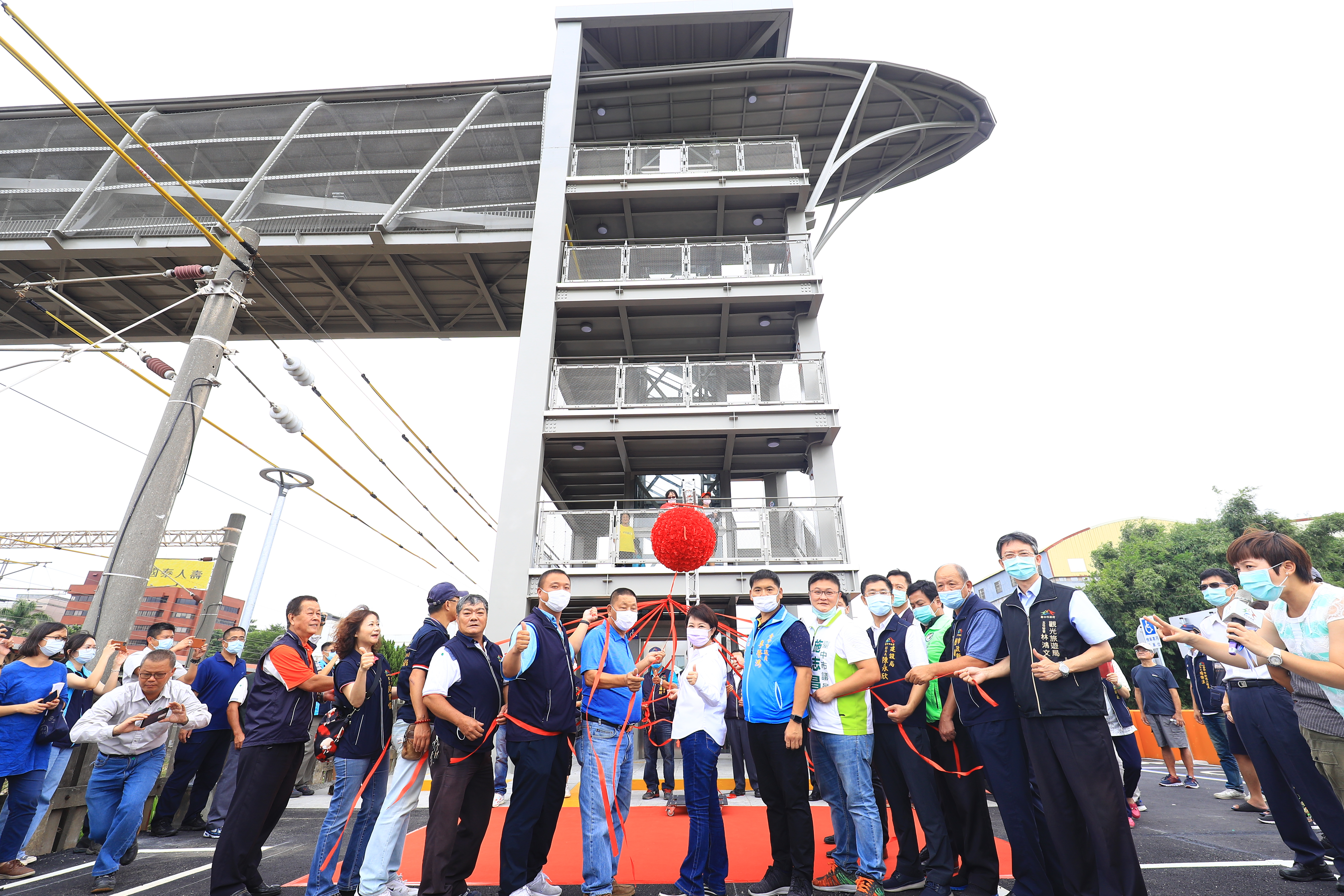 台中市政府今(24)日舉行大甲火車站人行跨越橋暨甲后停車場完工啟用典禮,盧市長表示,這座人行跨越橋施工比其它工程都要困難,因為要橫跨鐵路上方2萬5千伏特的電車線,且要等夜間車站關閉後才能施工,市府團隊全力以赴,興建完成全長49公尺的橋,前、後站兩座橋塔內更設有無障礙電梯,讓民眾、行動不便者、帶孩子的爸媽都可方便通行,也紓緩地下道人潮壅塞問題,後站也興建甲后停車場方便停車,感謝議員支持預算。