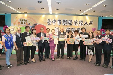 台中市政府社會局推動微型保險,與富邦慈善基金會等5家慈善單位合作,媒合富邦人壽保險等6家公司捐助近600萬元保險金,為台中年滿15歲到75歲列冊的低收入戶投保,若遭逢意外失能或不幸身故,可獲最高30萬元的保險理賠,保險自今年9月1日起生效,全市近3萬人受惠,低收入戶受益人數涵蓋率100%。