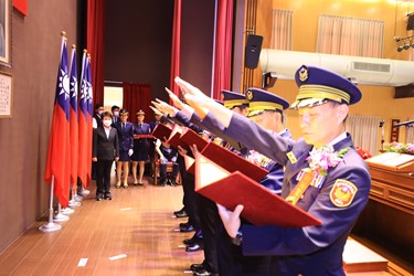 盧市長指出,直轄市分局長及大隊長是非常重要的職務,必須要有卓越的領導能力及實務經驗才能擔任,相信今日卸、新任交接後,會為台中市治安注入一股助力,期勉所有新任官能有更好表現,讓台中治安更加進步,人民生活更安定。