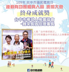 運動局指出,成功選手背後總有位偉大的教練,如指導我國代表隊參加「2019年世界殘奧田徑大獎賽(北京站)」榮獲3金2銀、「2019年世界帕拉田徑巴黎大獎賽」榮獲2銅的張福生及多位教練,則榮獲「優秀運動教練獎」。