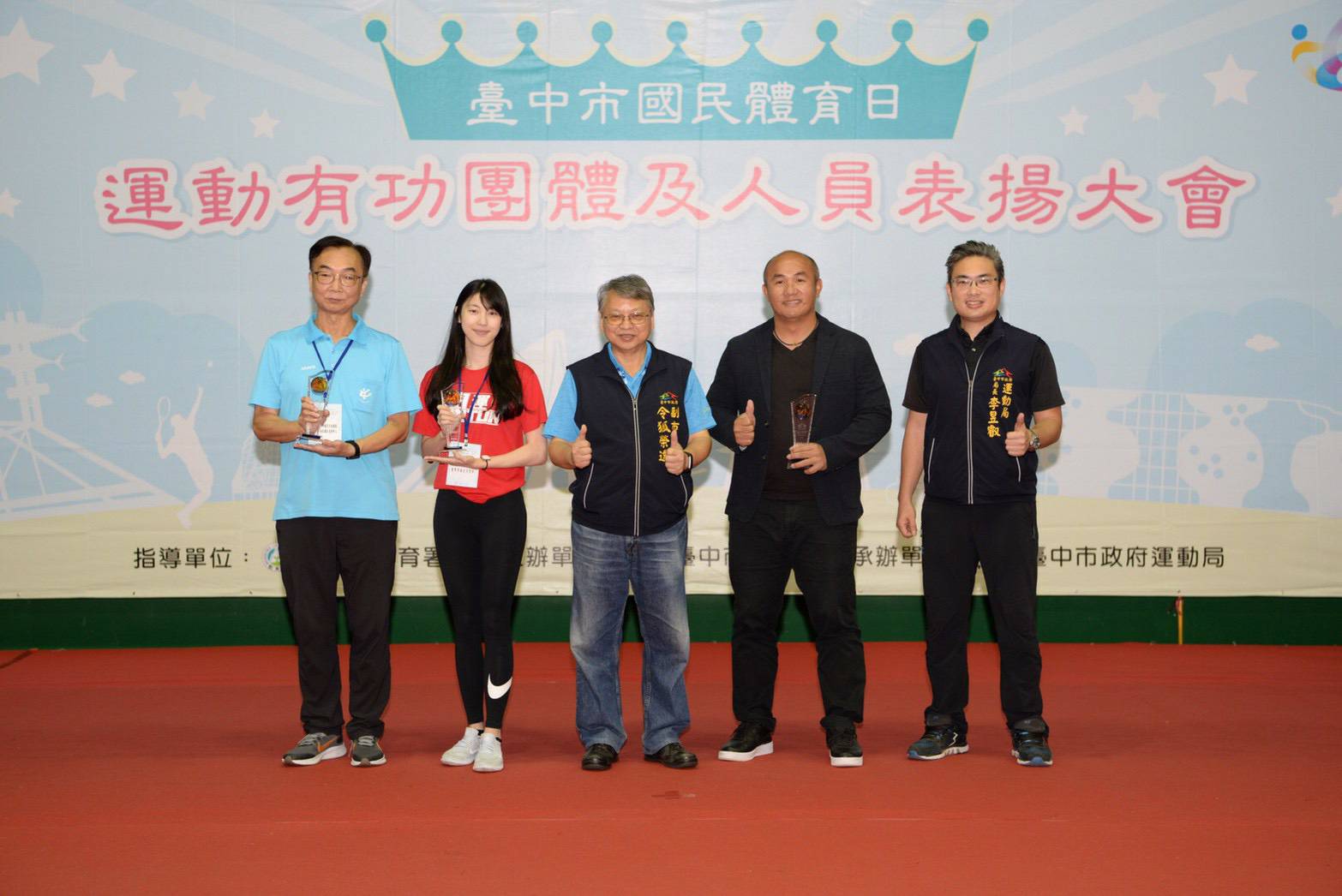 響應9月9日國民體育日,台中市政府運動局9月舉辦一系列運動i台灣嘉年華活動,今(27)日在朝馬國民運動中心登場,包括趣味闖關、親子律動遊戲、體適能檢測、百人有氧派對。副市長令狐榮達到場同樂,頒獎表揚張泰山、魏來長等36名對運動推廣有功人員與團體,感謝對體育運動的支持。