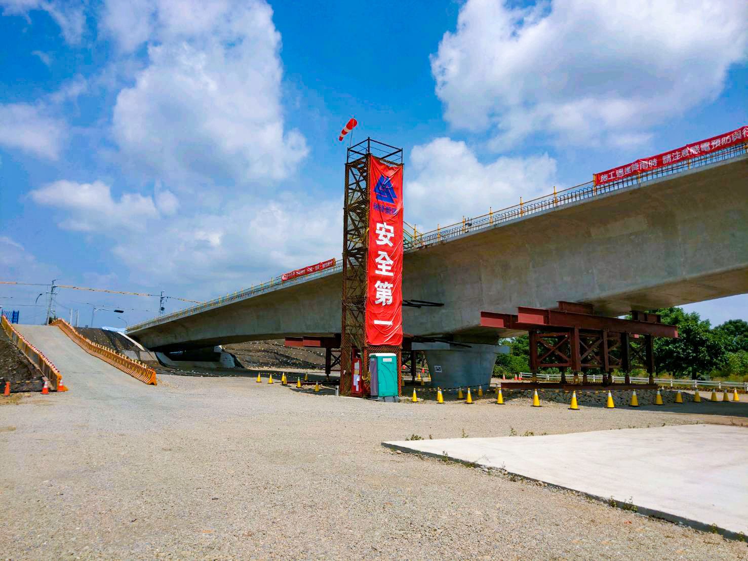 陳局長指出,市府積極推動勞動安全衛生及職業安全,能夠為台中爭取到第一個金安獎優等成績除了感動之外,有更多對同仁及工程團隊的感謝!建設局注重工程品質及工程安全,「國道三號烏日交流道聯絡道延伸至芬園段新闢工程延伸段」全長約1公里,將接續前期溪尾大橋工程,施作跨越貓羅溪橋梁向西延伸銜接台14線,連絡台中烏日及彰化芬園交通,創造中彰區域共同生活圈。