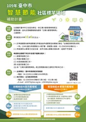「109年台中市智慧節能社區標竿場域補助計畫」計畫申請文件與資訊請至經發局網站( https://www.economic.taichung.gov.tw/1613460/post )下載;。說明會辦理時間與地點請至報名網址( https://www.surveycake.com/s/4wG4Z ),或洽台灣經濟研究院曾小姐02-2586-5000分機831洽詢。