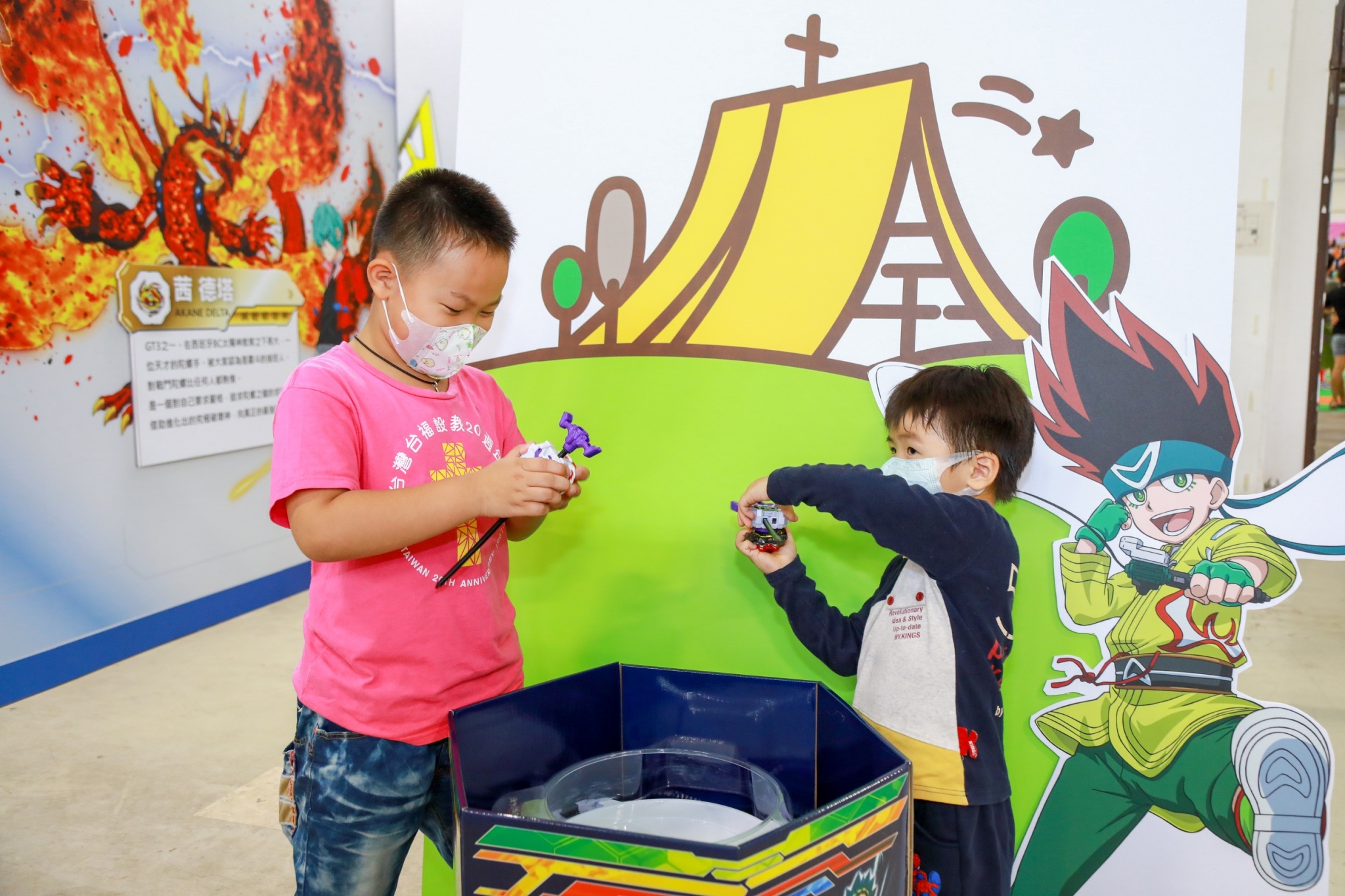 「2020台中國際動漫博覽會」今(9)日至18日在文化部文化資產園區開展,以「Hito Taichung!畫自己的主場」為主題,運動、熱血為主軸,邀請在台灣熱播的日本知名動漫「戰鬥陀螺 爆烈世代 G」、「棒球大聯盟2nd」及台灣動漫「宅男打籃球」展出,還將戰鬥陀螺大賽搬到展場,重現熱血卡通經典元素,吸引不少動漫迷前來爭睹為快。