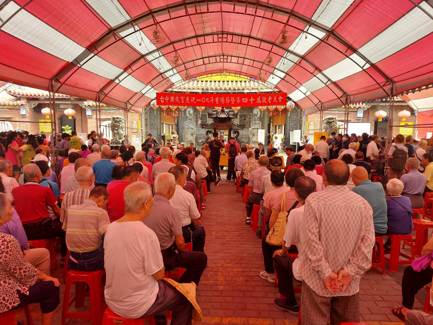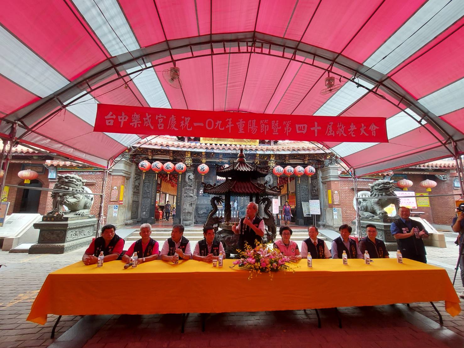 10月25日是重陽節,台中市樂成宮今(14)日提前舉行重陽敬老大會,發贈重陽敬老禮金給4023名70歲以上長者,其中有10名百歲人瑞。民政局表示,樂成宮長期致力公益慈善,重陽敬老禮金發放今年正好屆滿40年,善舉堪稱台中市公益典範。
