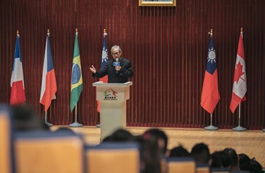 令狐副市長以自身經歷勉勵青年學子積極參與公共事務、關心全球時事,分享2016年帶領國際媒體登上太平島,介紹我國南沙群島生態環境及其在國際社會扮演和平與人道救援者的角色,對於「南海和平倡議」及將我國納入南海多邊協商機制具有重大意義,提供模擬聯合國會議國際談判的實際範例。