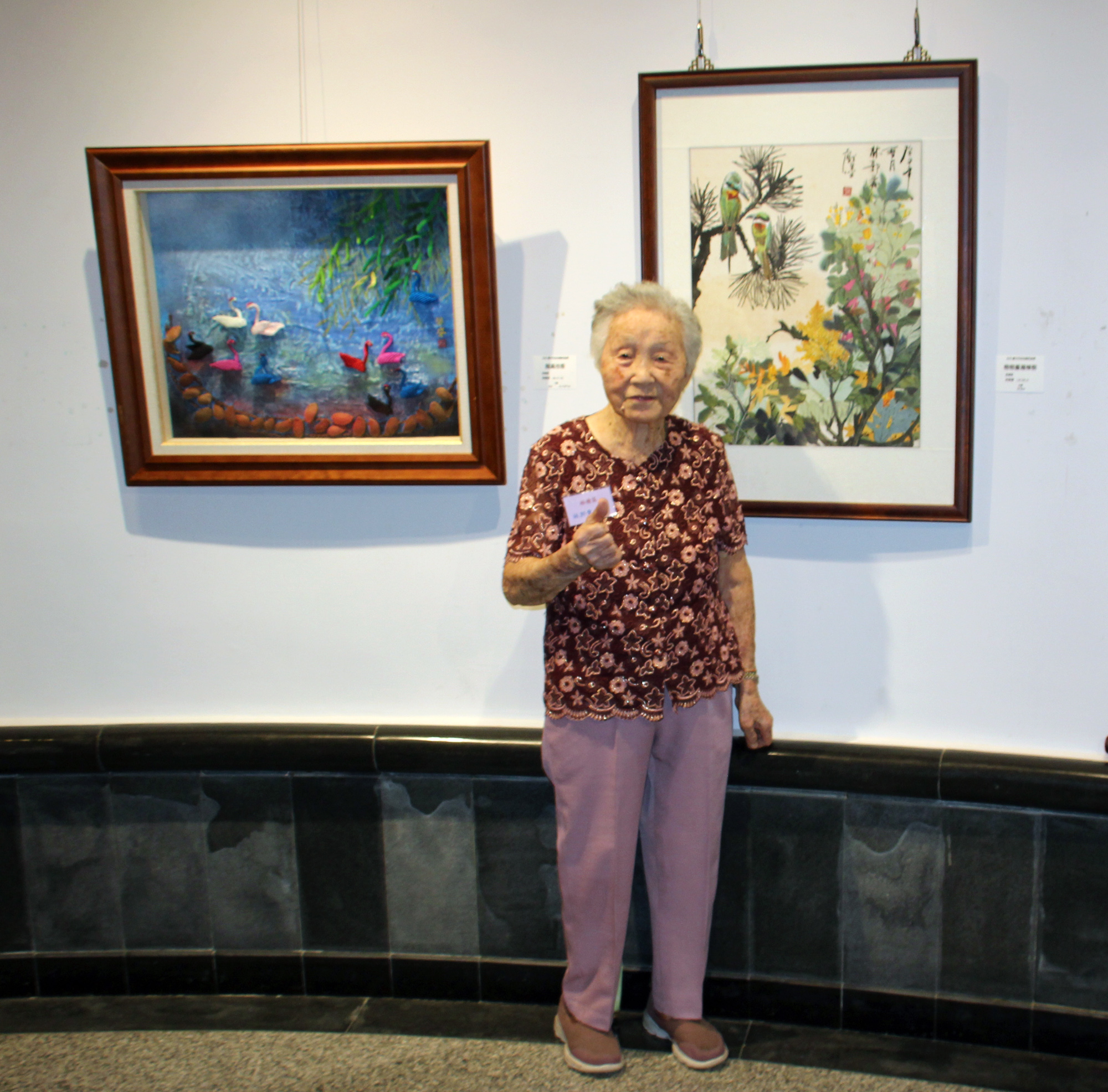 施副局長進一步表示,今年計有5位高齡90餘歲的參展者,分別是民國14年生的梧棲區歐蔡對女士、林郭愛女士,霧峰區林成岳先生,以及民國18年生的周振淮先生及清水區褚錦屏先生,感謝這些熱愛藝術的長者們參加這次活動,展現台中在文化藝術的能量。