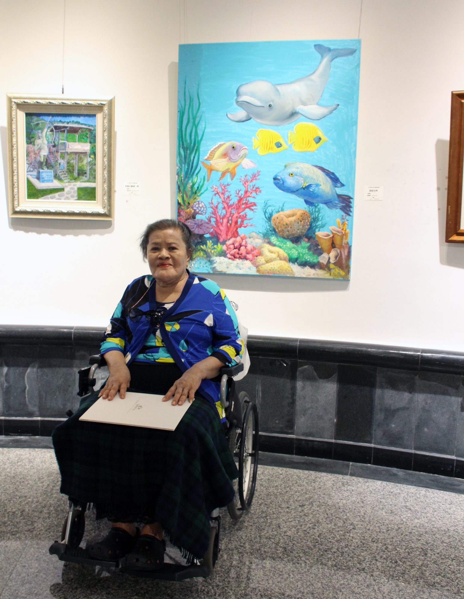 港區藝術中心進一步表示,這次參展者林郭愛因熱愛繪畫,作品《戀戀台灣欒樹》以住家附近的台灣欒樹為主題,畫出台灣欒樹開花時鳥類在樹上停歇氣氛之美;歐蔡對因為家中是開海鮮餐館,因此畫魚是非常開心的事,這次參展的作品為《海底世界》用色繽紛大膽,獨具特色。