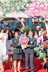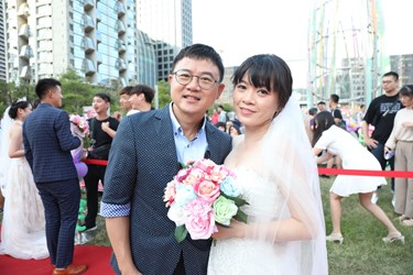 民政局說明,今日聯合婚禮99對新人之中不乏相識淵源特殊的佳偶,新人黃建傑與田蕙嘉、張維哲和謝子涵都因市府舉行的單身聯誼而相戀,今日又在市府見證之下完成終身大事;新人劉俊宏為台中市後備指揮部中士,與伴侶廖昱恩都是軍職身分,兩人今天以軍服取代婚紗西裝,在人群中十分亮眼。而劉耀文、劉懷汝兄妹,因父母在29年前參與集團結婚的經驗,分別與另一半報名參加,覺得可以在地方首長的證婚及中眾人祝福下完成終身大事極具意義。