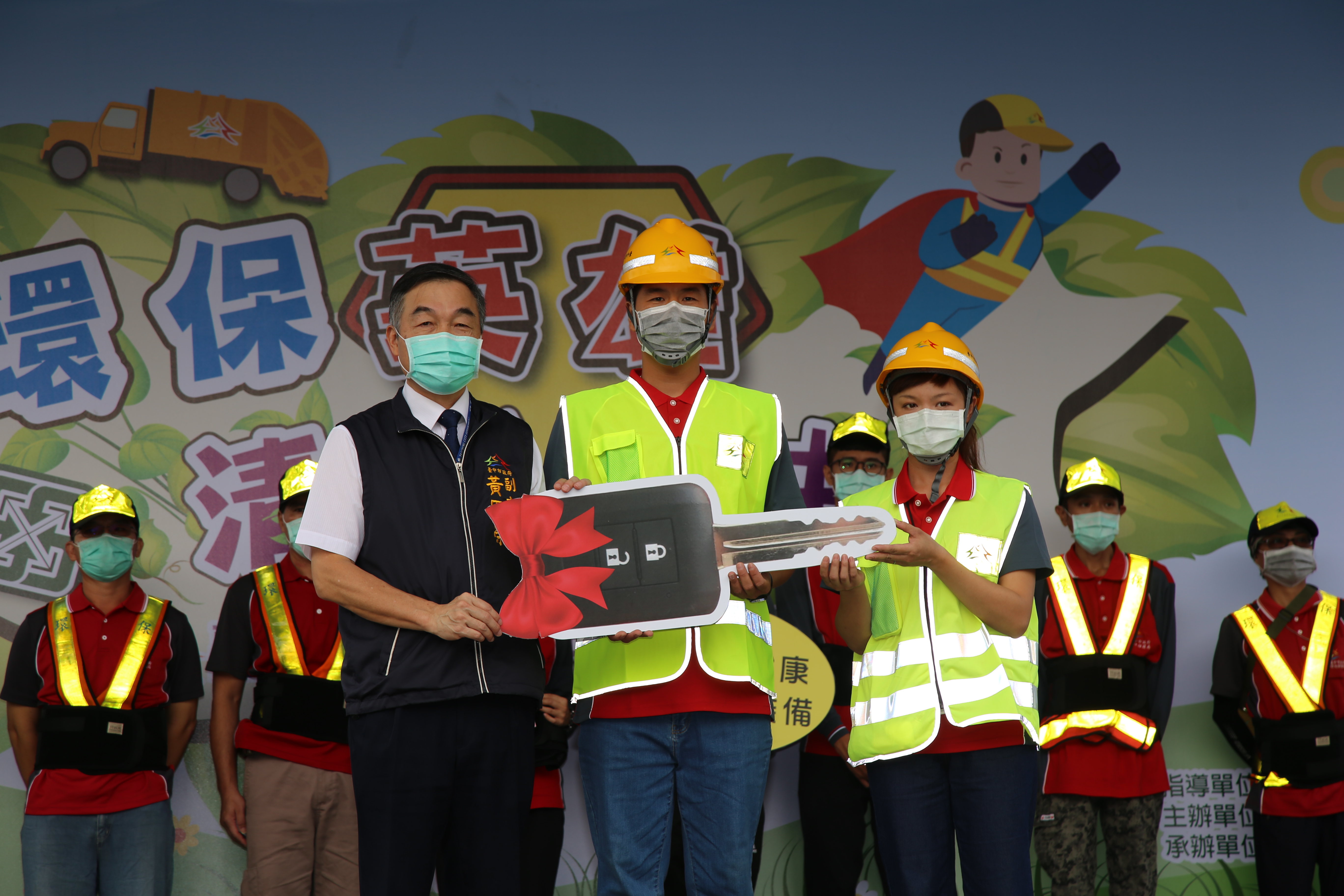 台中市政府重視清潔隊工作環境,今年除編列1,880萬元購置反光衣帽、護腰等裝備,更添購27輛垃圾車及20輛資源回收車,逐年汰換老舊車輛。迎接10月25日「清潔隊員節」到來,台中市政府環保局今(21)日在北屯區新平公園舉辦慶祝活動,副市長黃國榮代表市長盧秀燕出席,頒獎表揚171位績優清潔人員,肯定城市英雄守護乾淨市容。