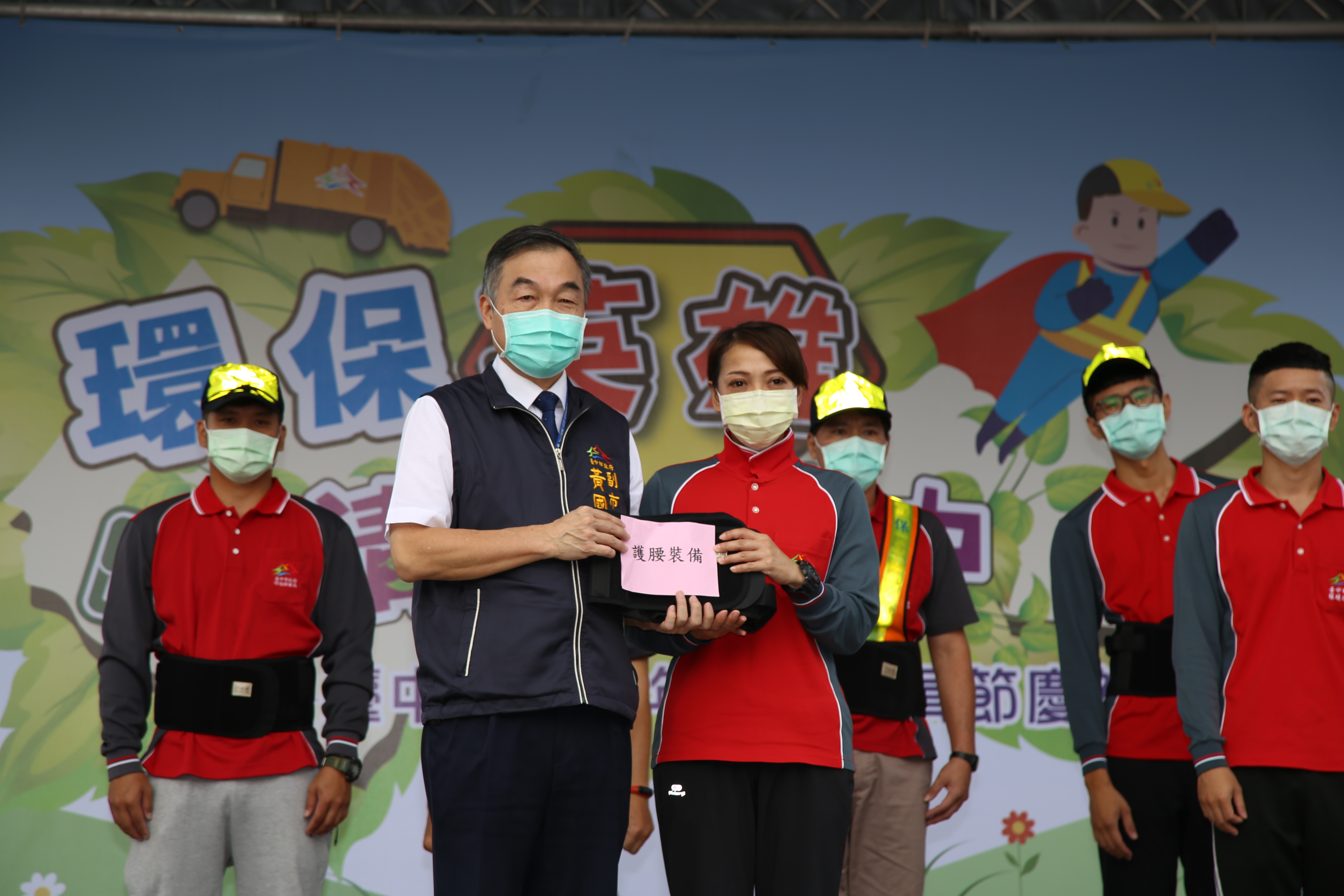 環保局代理局長陳宏益指出,市府感謝清潔人員辛勞付出,今年編列約1,880萬元裝備經費,購置反光衣帽、安全帽、安全鞋等工作裝備,並購置清潔隊員每人一副護腰裝備,提供清潔隊員保護腰部使用;除換購裝備,市府也向中央爭取汰換老舊車輛補助費4,544萬元,自編清潔車輛經費7,897萬元,共1億2,441萬元,添購27輛垃圾車及20輛資源回收車,讓老舊清潔車輛加速淘汰,保障行車及作業人員安全。